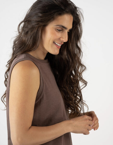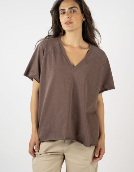 טופ 'חיים' – וי כותנה שטוף חום