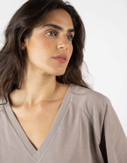 טופ 'חיים' – וי כותנה שטוף חול מדבר