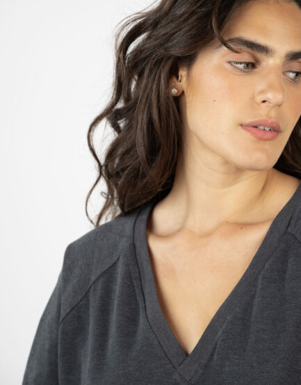 טופ 'חיים' – וי כותנה שטוף פחם