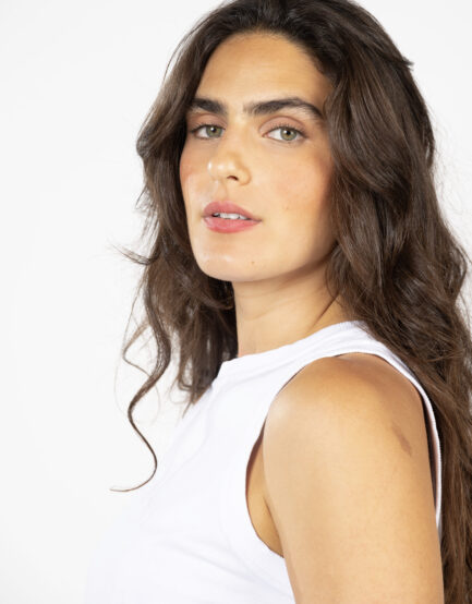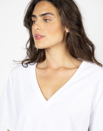 טופ 'חיים' – וי כותנה שטוף לבן