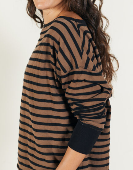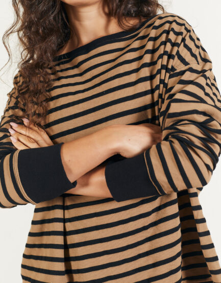 טופ 'אמא' פס שחור שמנת