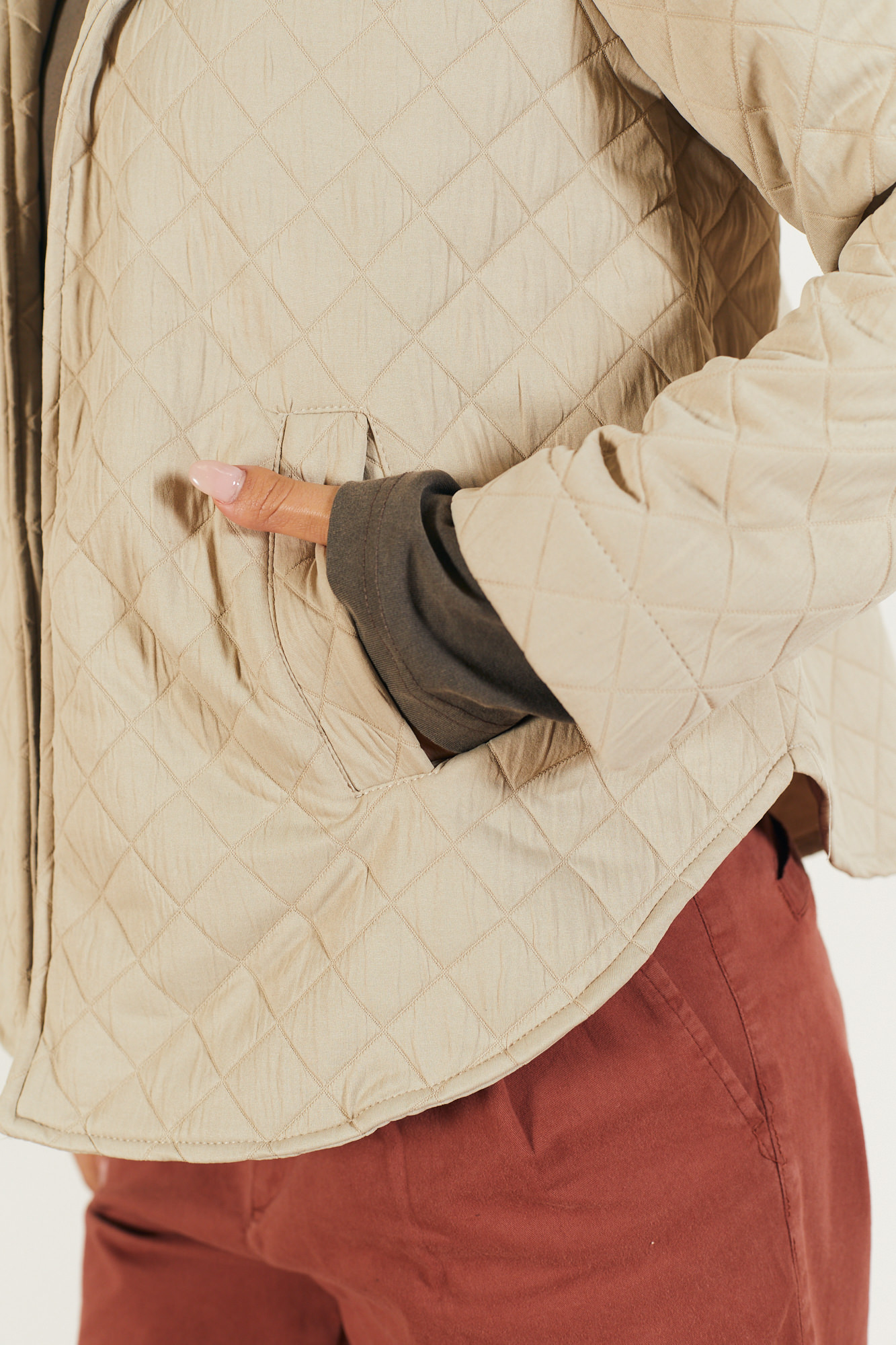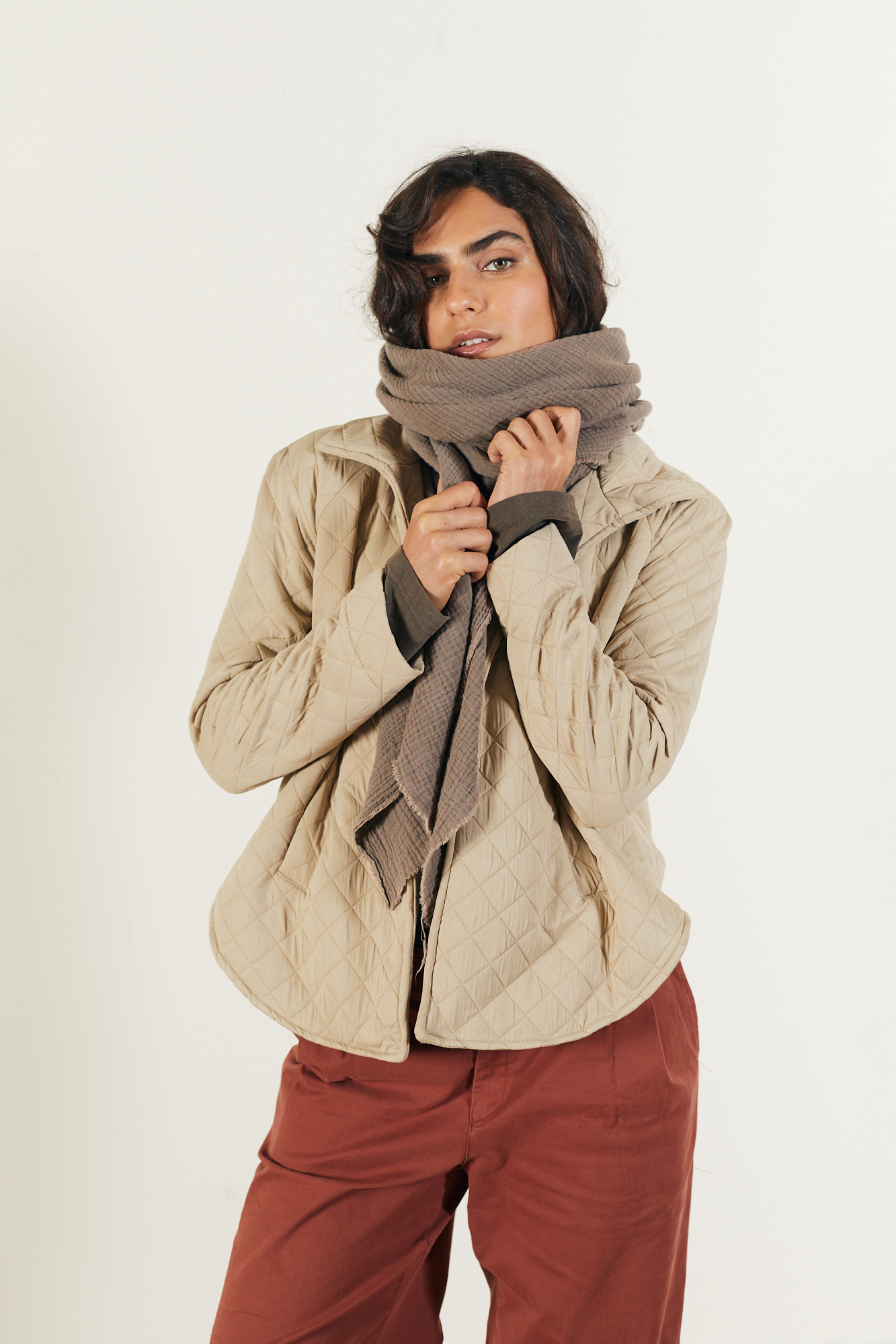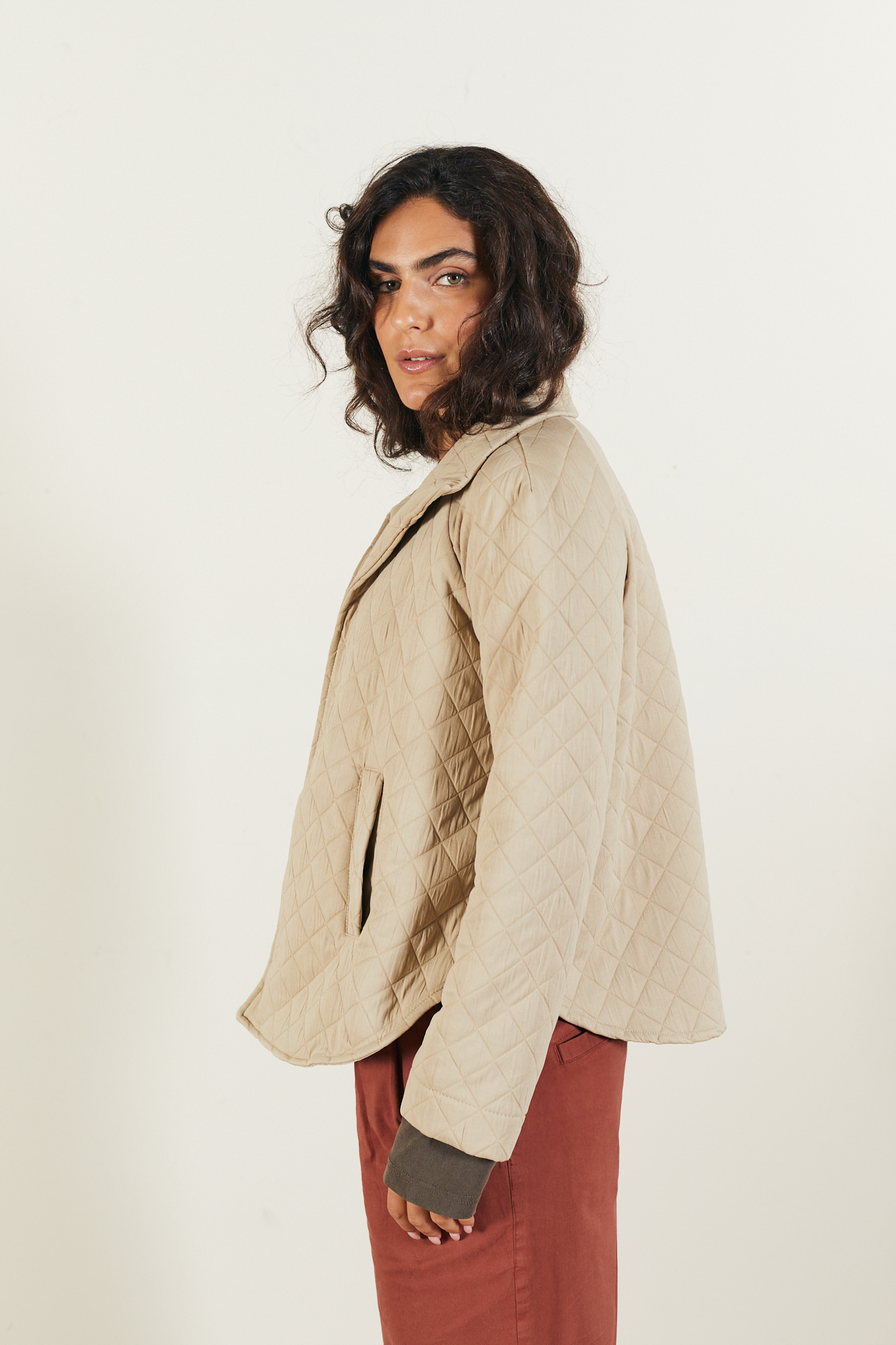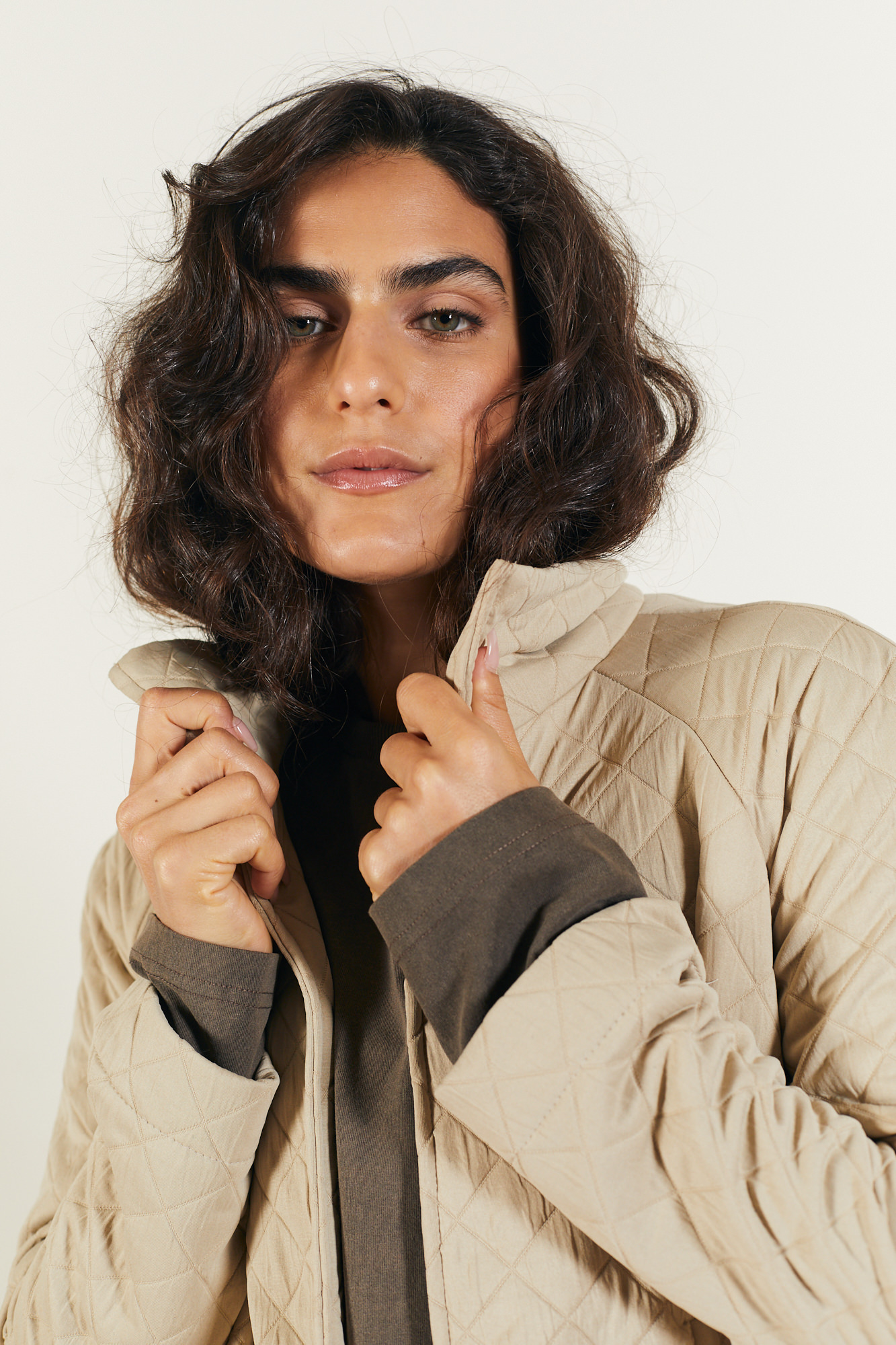 ג'קט תמרושקה הוא השילוב האידיאלי בין סטייל לנוחות. שני אלמנטים שאני מקפידה עליהם מאוד. עשויי קווילט לא מאוד עבה, מחמם במידה הנכונה ל"חורף" הישראלי. כיף ללבוש אותו בשכבות, להוסיף צעיף "חיימוש" וליצור לוק הורס . בצילומים, אחינועם לובשת אותו עם מכנסי "אלמונת" צבע בריק, ומתחת, חולצת "שייקה" מקולקציית היוניסקס שלנו. מגיע כמו תמיד במידות נדיבות: