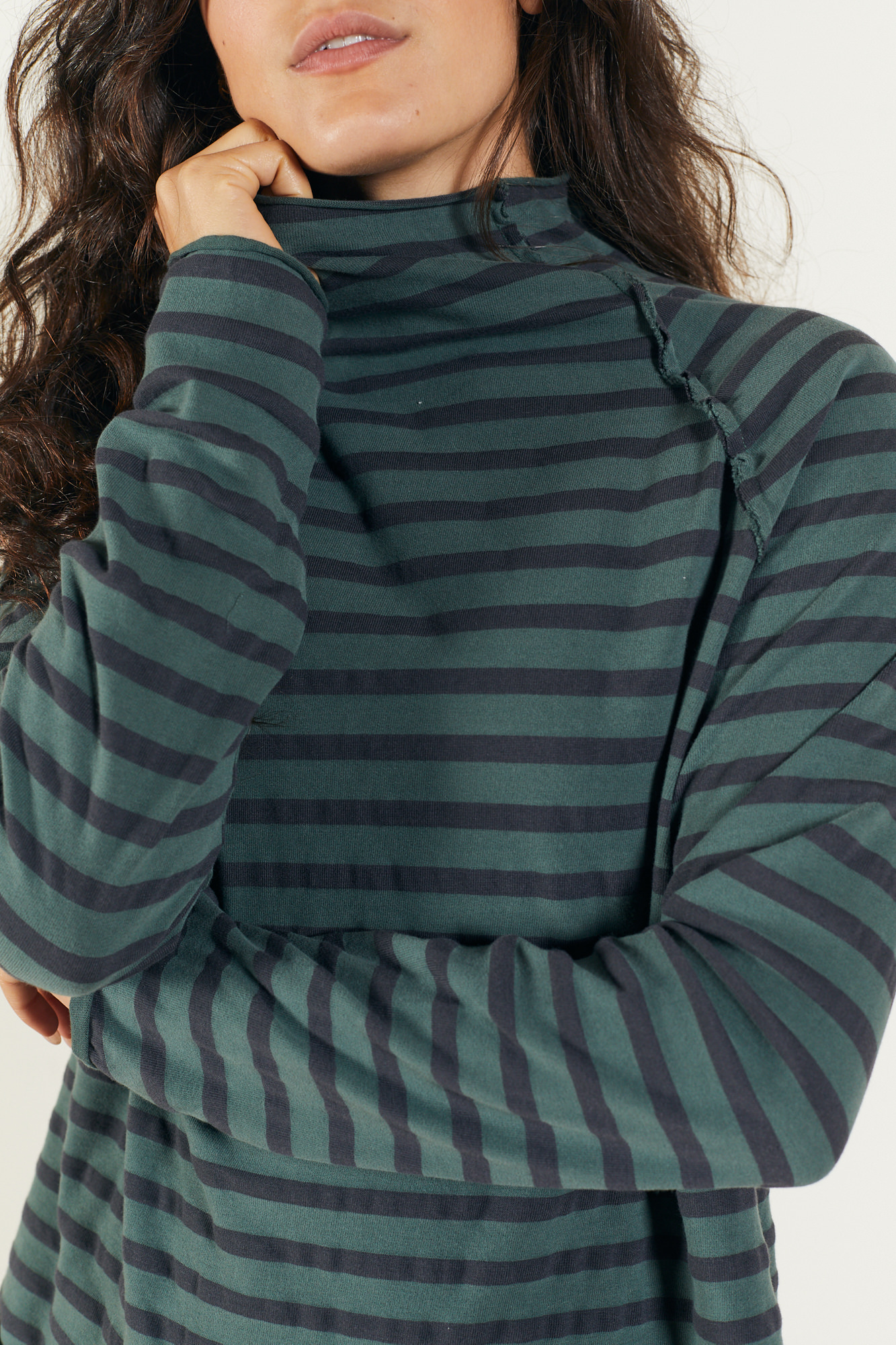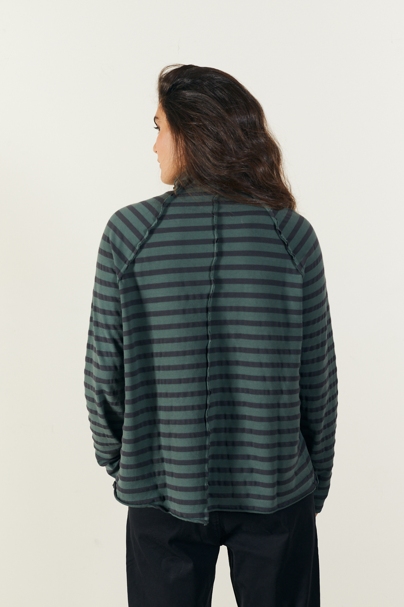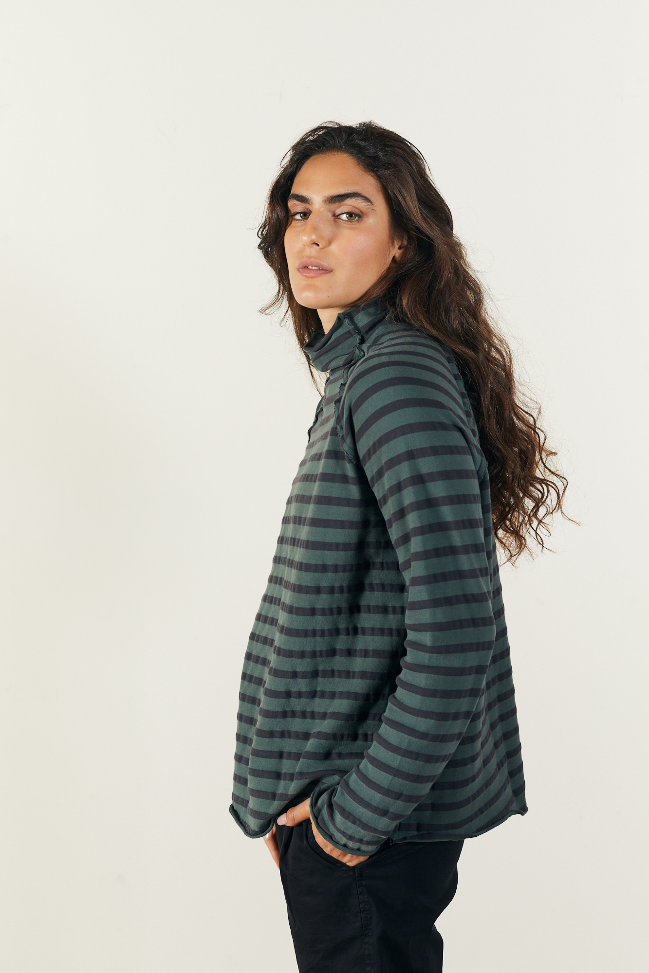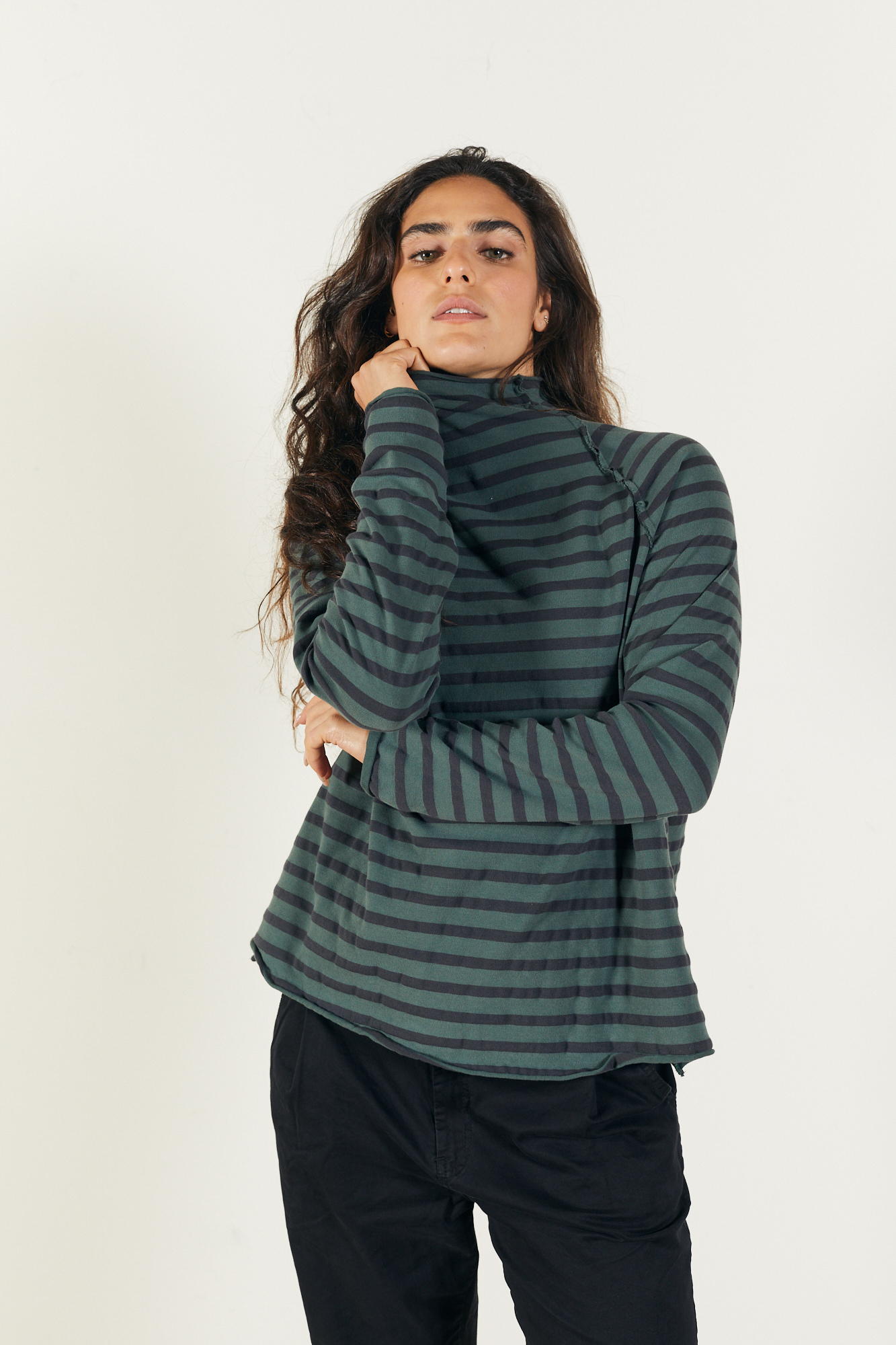 ניראה שהשתוללנו עם צבע בחורף הזה… טופ אמא, הוא אמא שלי, שמאוד אוהבת פסים. גזרת גולף רגלן עם תפרים חיצוניים. זו גזרה אהובה ומוכרת, עם טוויסט של צבע. רחוקה מהגוף אבל סופר מחמיאה ונוחה. הקצוות פרומים בעדינות רבה. עד שאסיים לכתוב על החולצה, כבר לא יהיה… היא נחטפת בחנות.