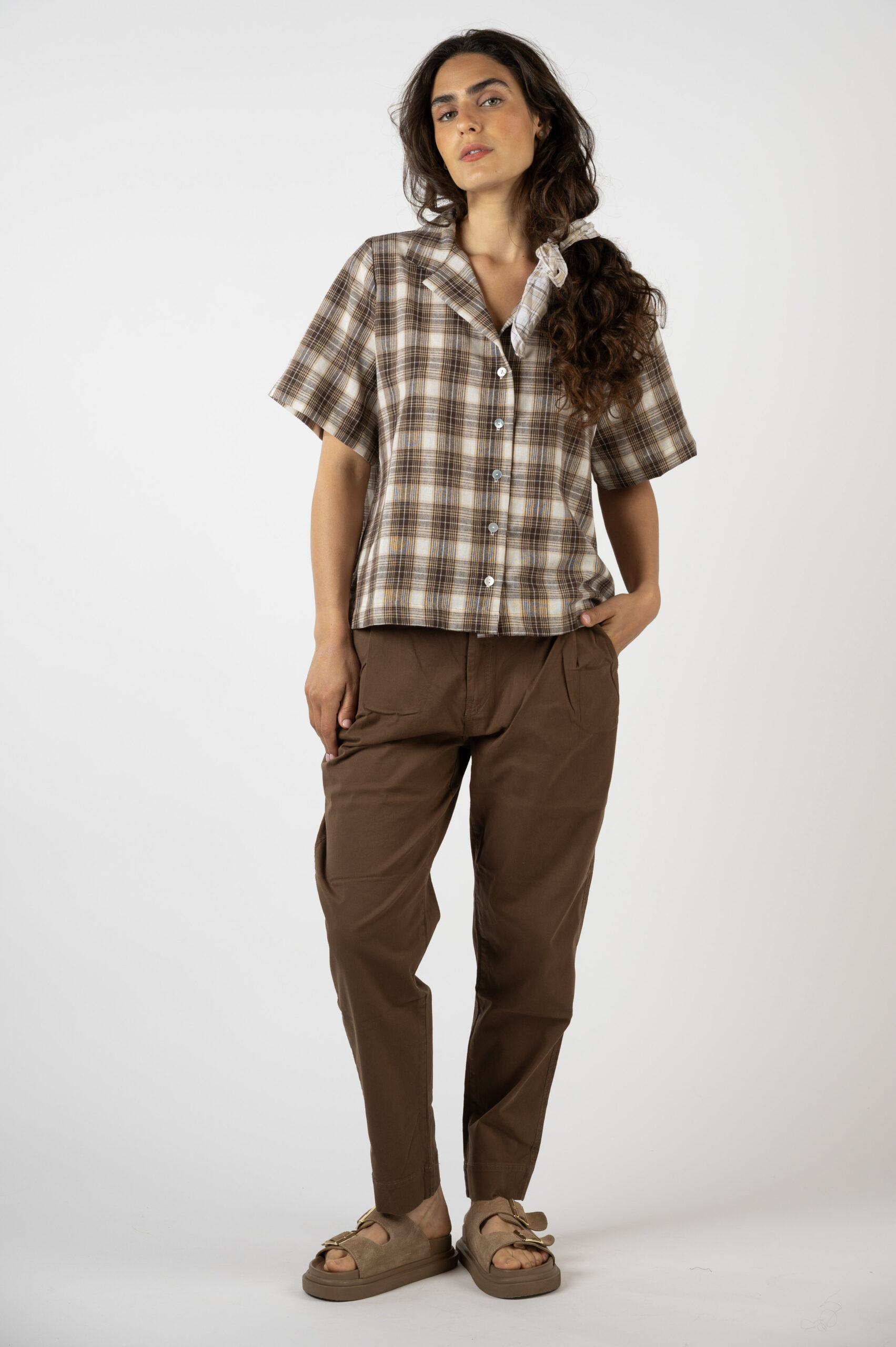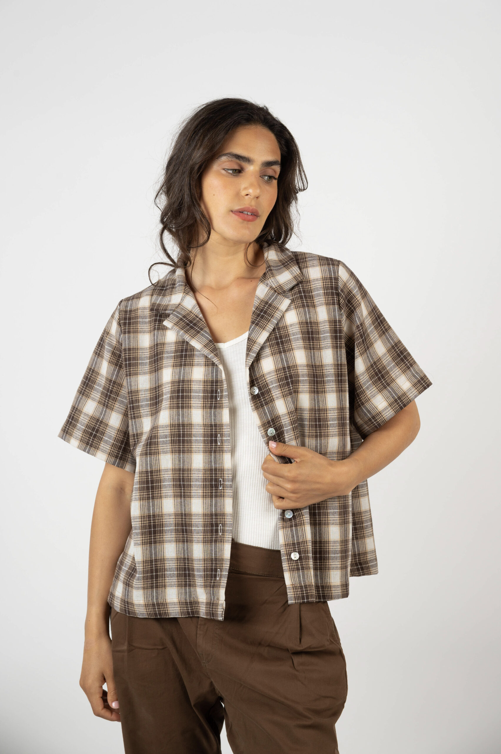 טופ 'בריאה' היא עוד אינטרפרטציה שלנו לטרנד המשבצות. למעשה היא אותה גזרה של טופ 'גדילה' המצוינת, אבל הפעם עם בד טיפה יותר עבה וללא קימוט. היא מתאימה למי שאוהבת את החולצה שלה רחוקה יותר מהגוף. תלבשו אותה AS IS או פתוחה מעל גופייה דקיקה. טופ 'בריאה' בעלת נוכחות ואמירה ברורה. נסו אותה, יש ממש מעט.