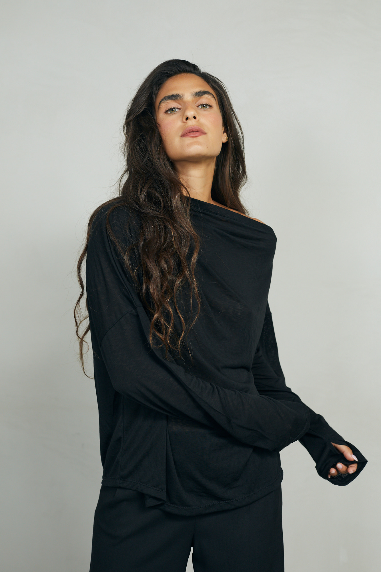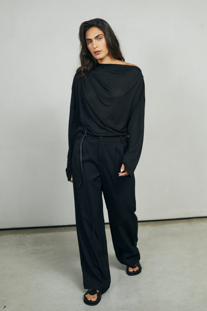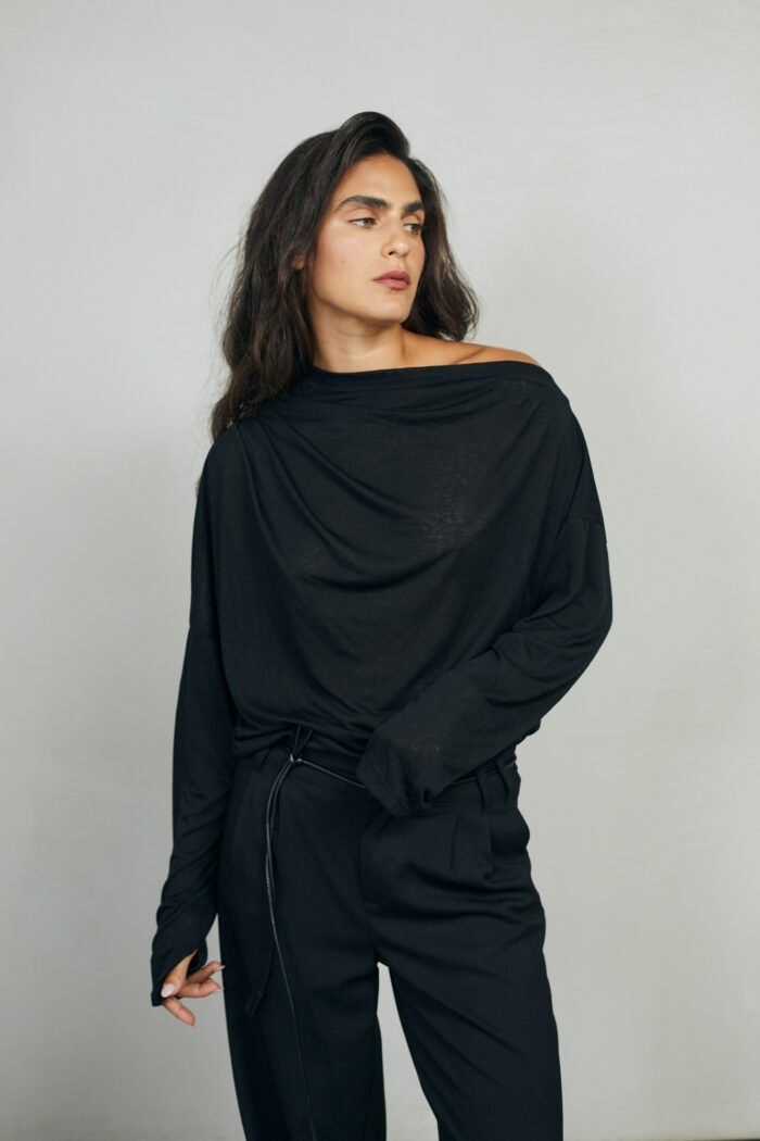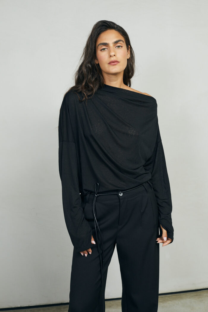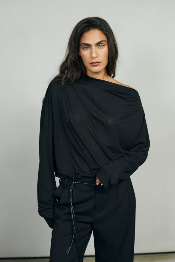 ואו איזו חולצה, אמאלה. נתחיל מהבד הנפלא, שנשפך על הגוף ברכות מלטפת. והגזרה? כל כך אצילית ומיוחדת. קפלים עדינים בכתף אחת  וכתף שניה  מעט חשופה. היא גם אלגנטית וגם נונשלנטית, ויש שיגידו סקסית במידה הנכונה. בול לעכשיו.