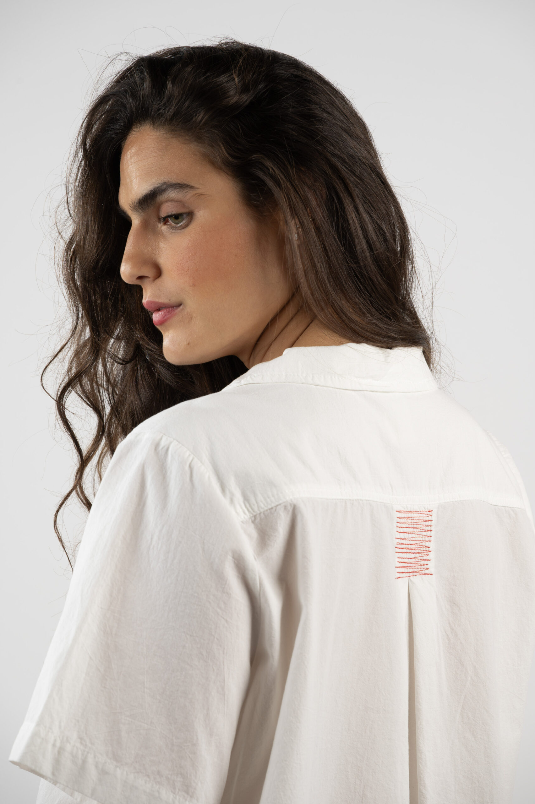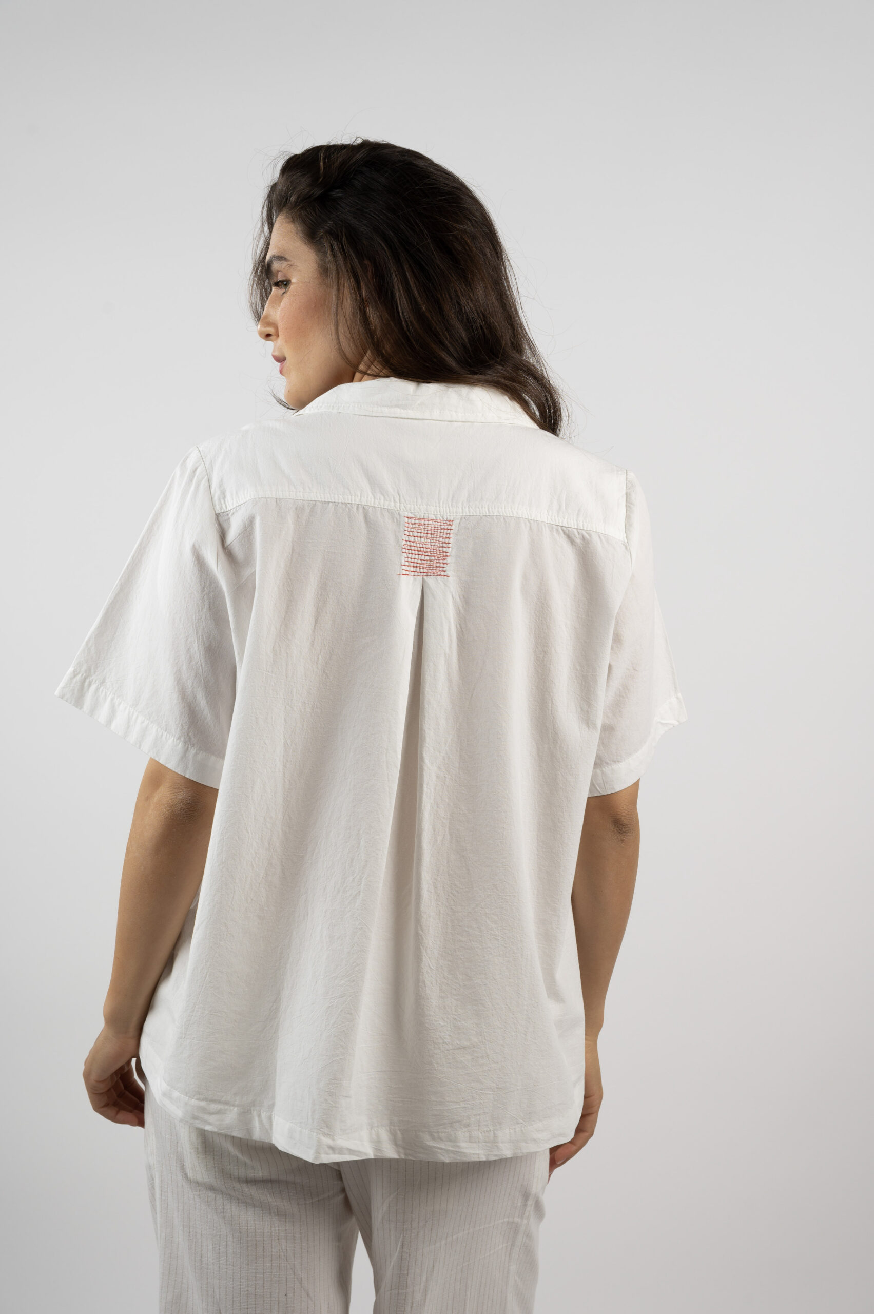 טופ 'הוויה' – מכופתרת תפר אדום לבן
