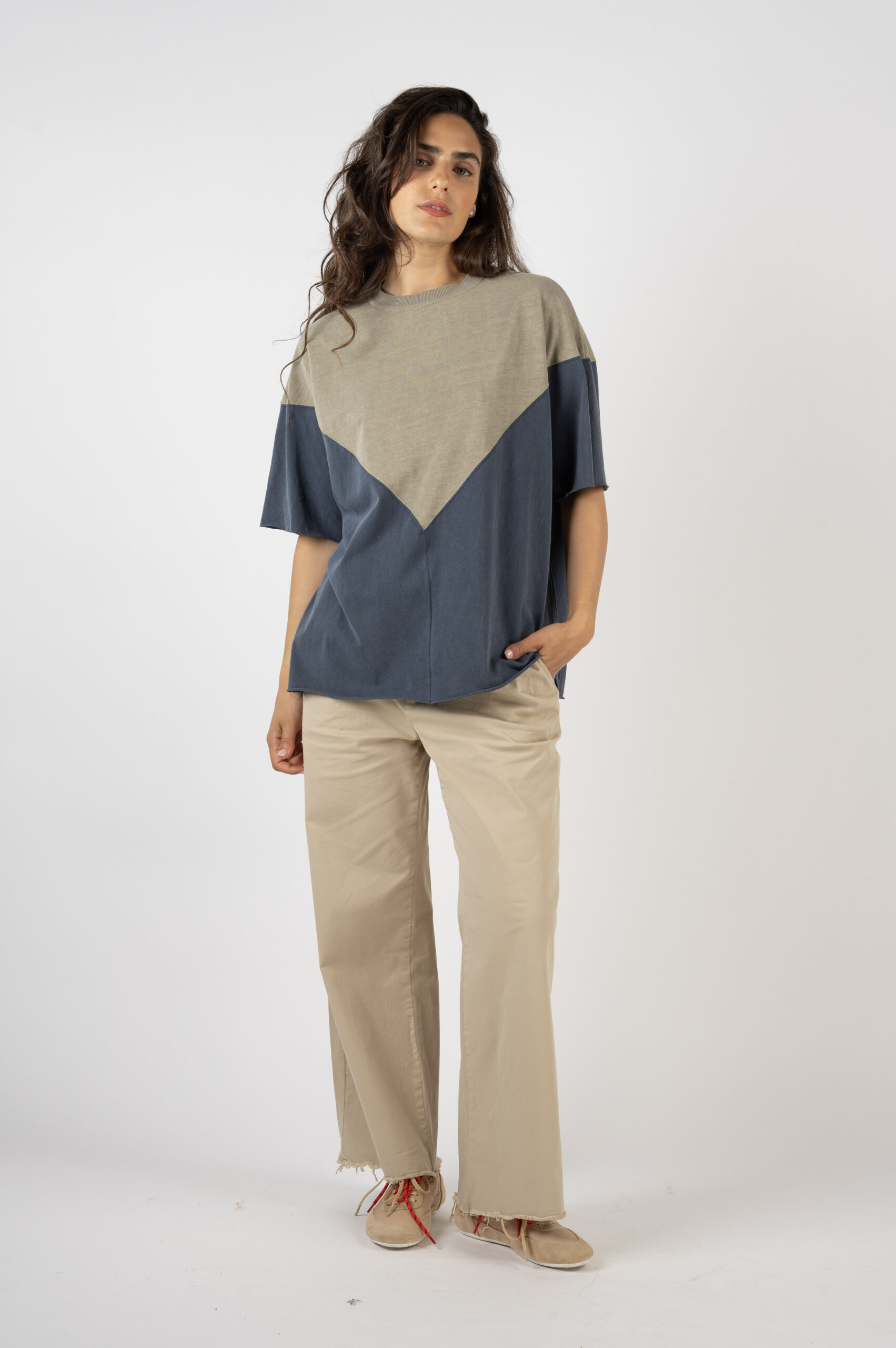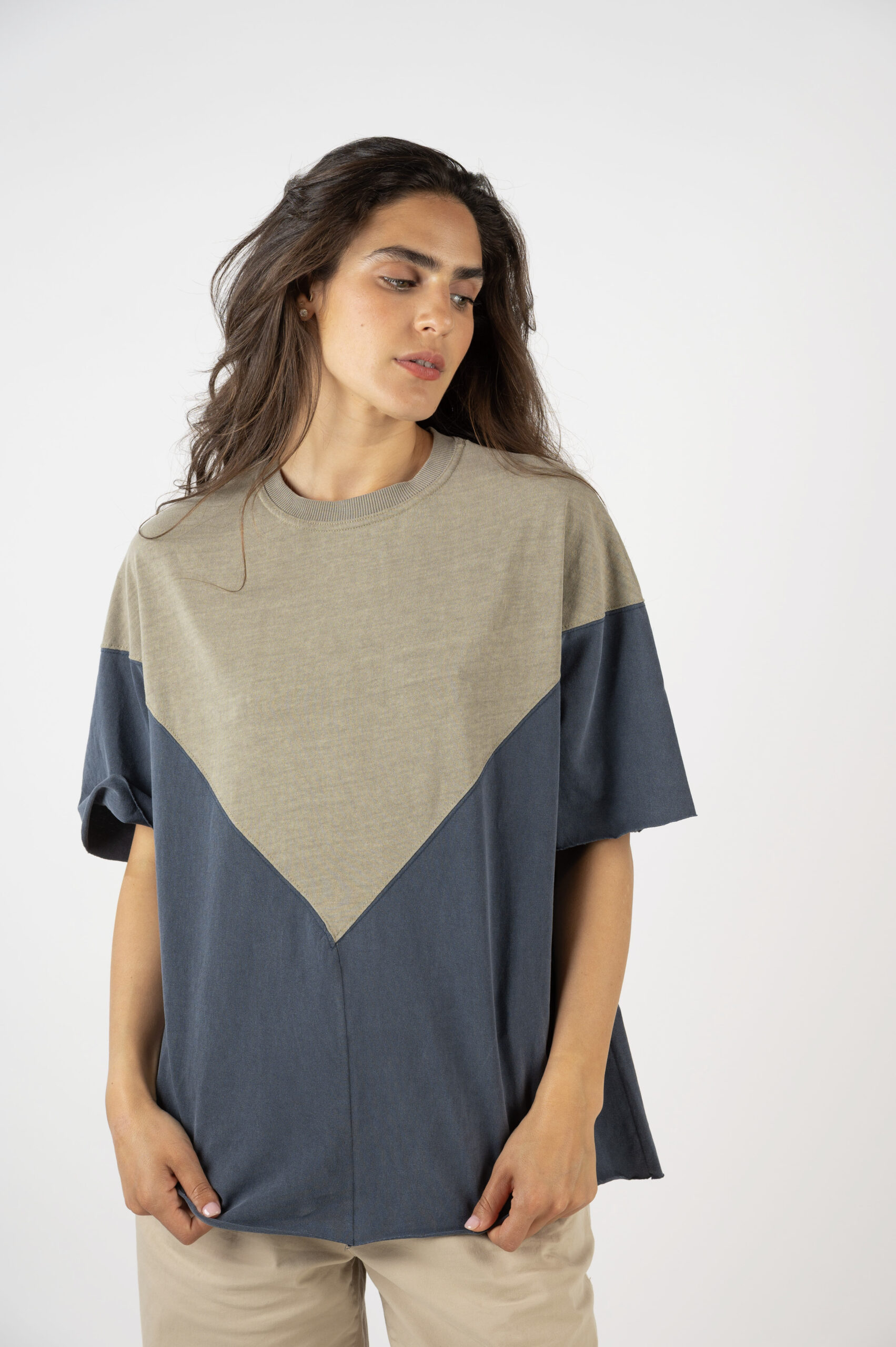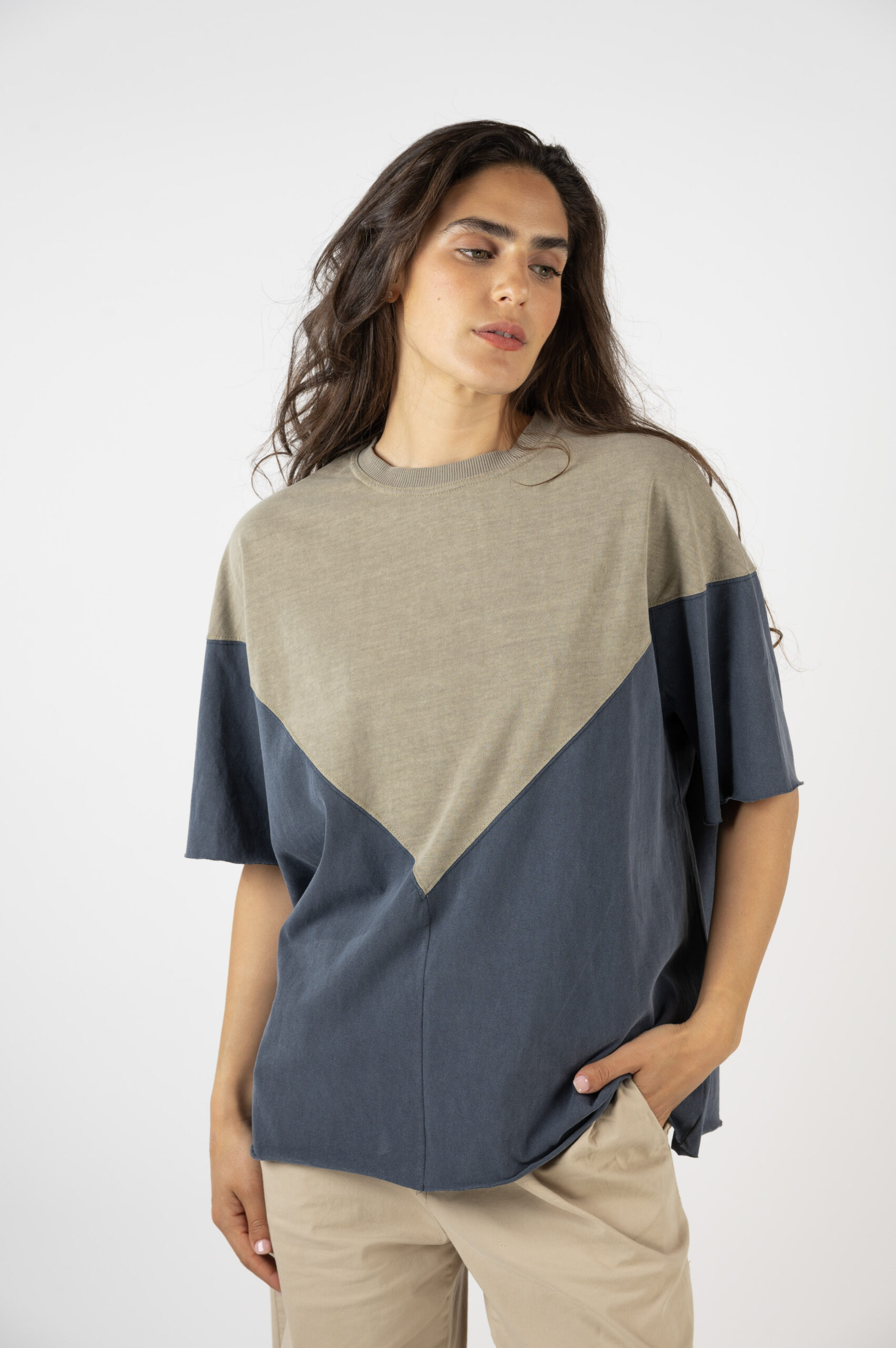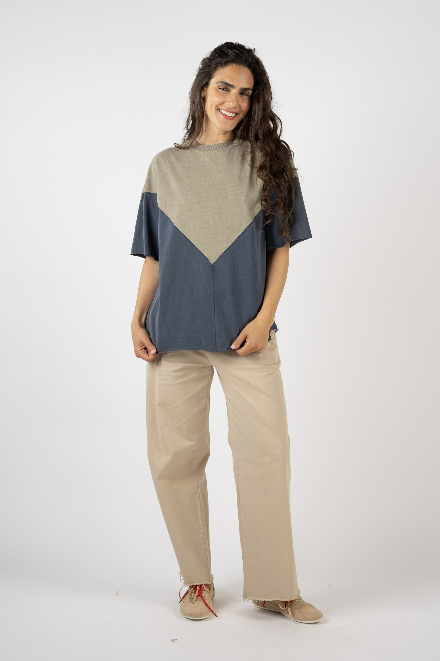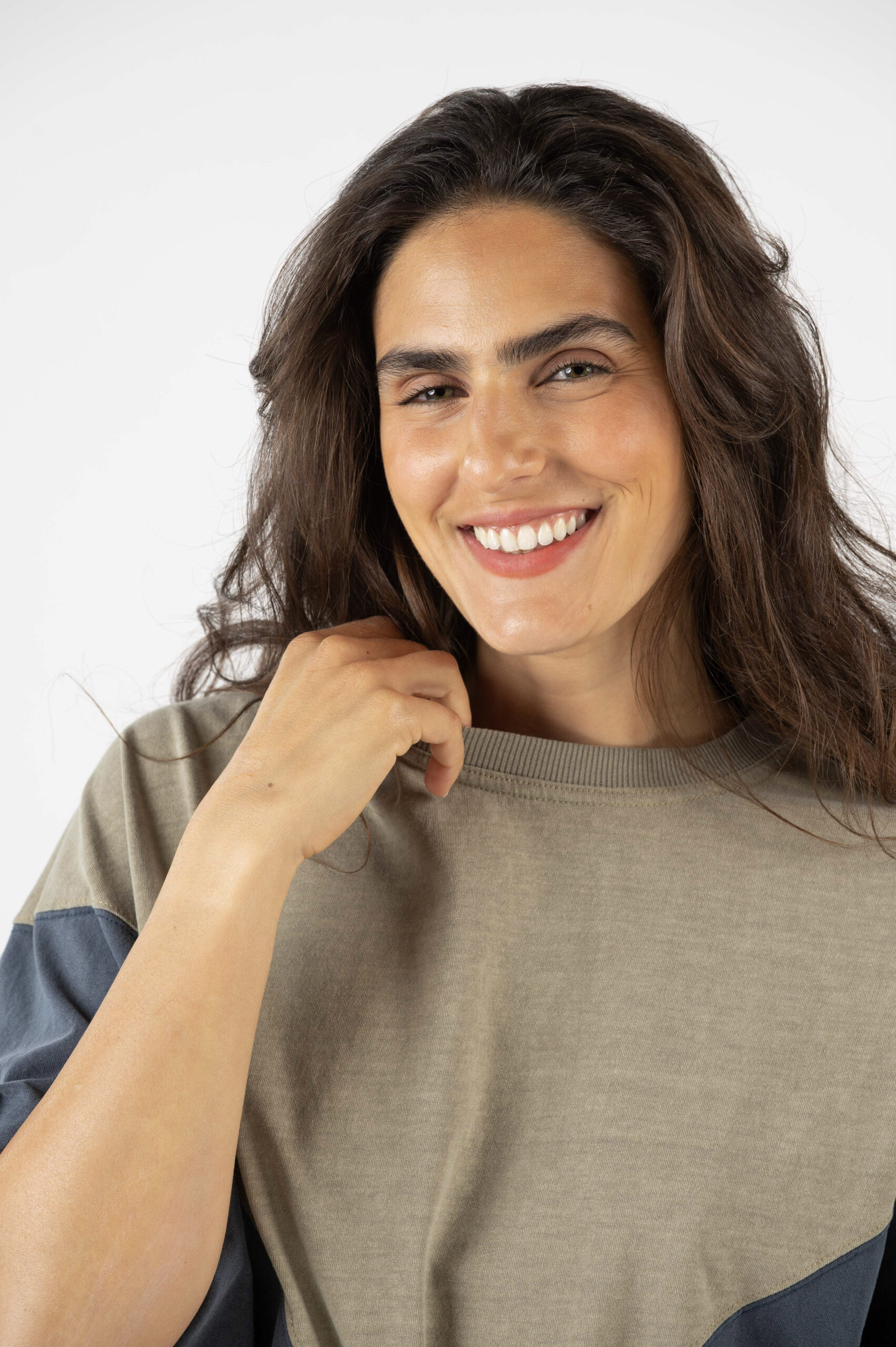 לא צריך הרבה כדי לייצר לוק מגניב שרואים ממרחקים והופך אותך לאישה עם אמירה אופנתית. טופ 'הרמוניה' תמקם אותך בשורה הראשונה… היא בייסיק בגזרה מושלמת עם טוויסט של חלוקת צבעים למראה מתוחכם. קלאס באפס מאמץ. הבדים בדי כותנה שטופים בצבעים שמתאימים עם כל מה שכבר יש לך בארון. קחי לך אחת, מקסימום תחזרי לעוד.