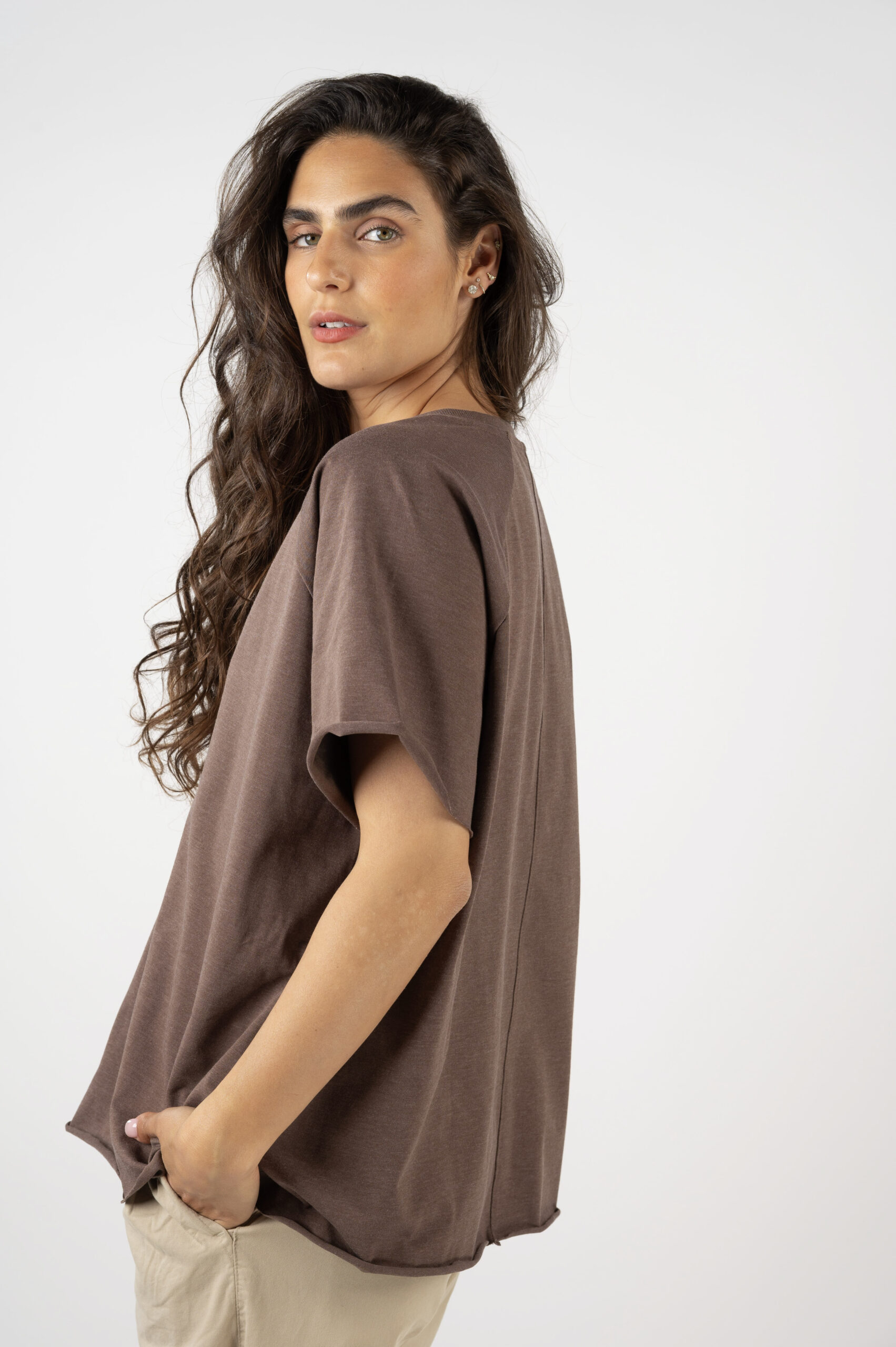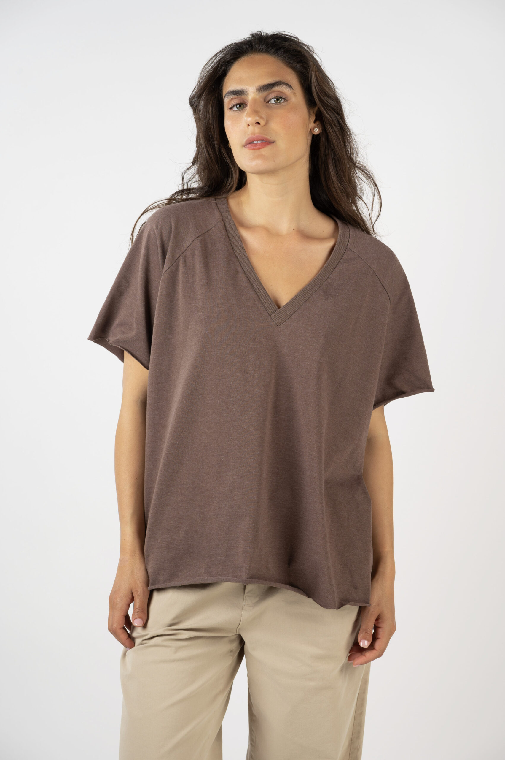 כשאנחנו עושות בייסיק, לפעמים נדמה שזו עוד סתם חולצה. אבל בייסיק טובות, בגזרות מנצחות – צריך לדעת לעשות. ואנחנו יודעות! טופ 'חיים' בגזרת וי רגלן היא לגמרי כזו. פתח וי מדויק בגימור בד ריב מאותו הצבע, בד שלא נצמד לגוף, גימורים ללא תפרים מה שיגרום לבד להתגלגל בטבעיות, טיפונת גזרת A. על הבייסיק הזאת אתן תודו לנו.
