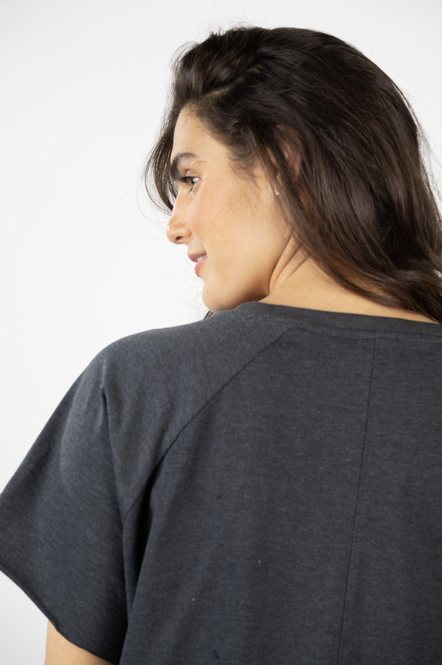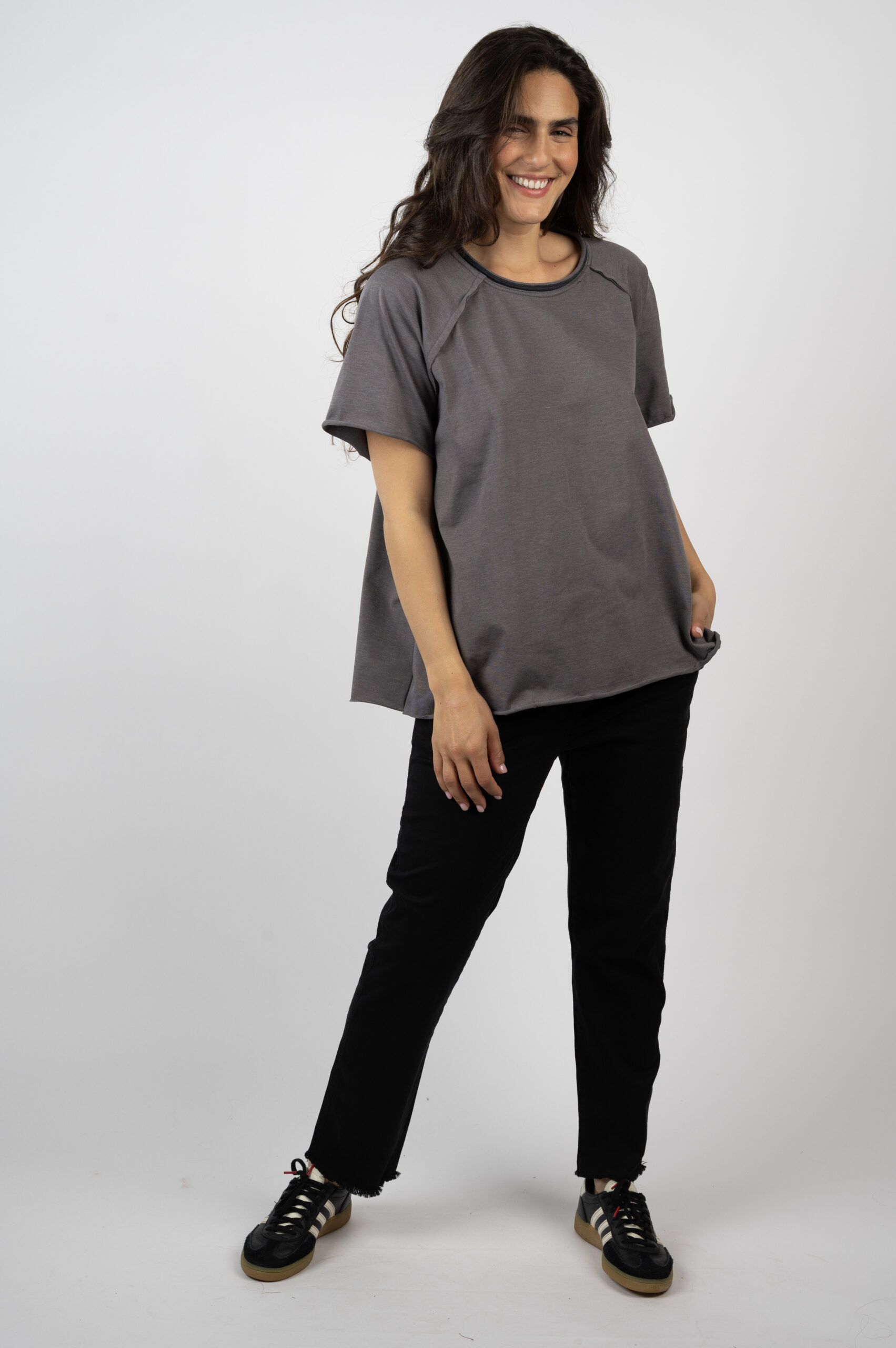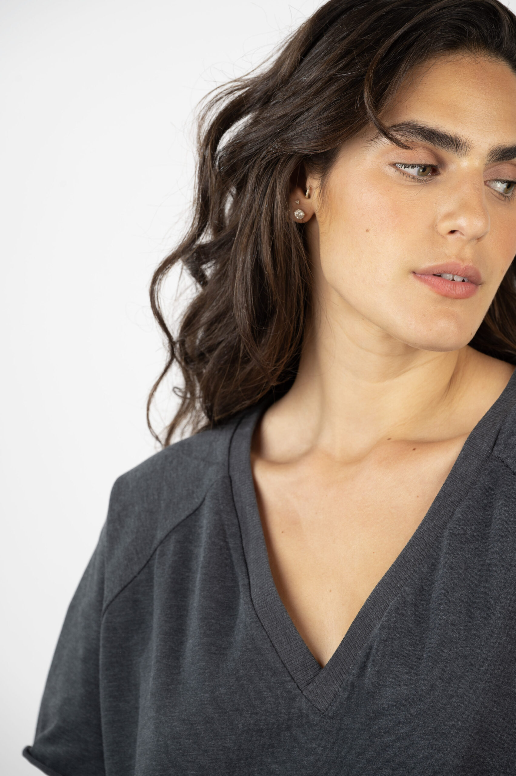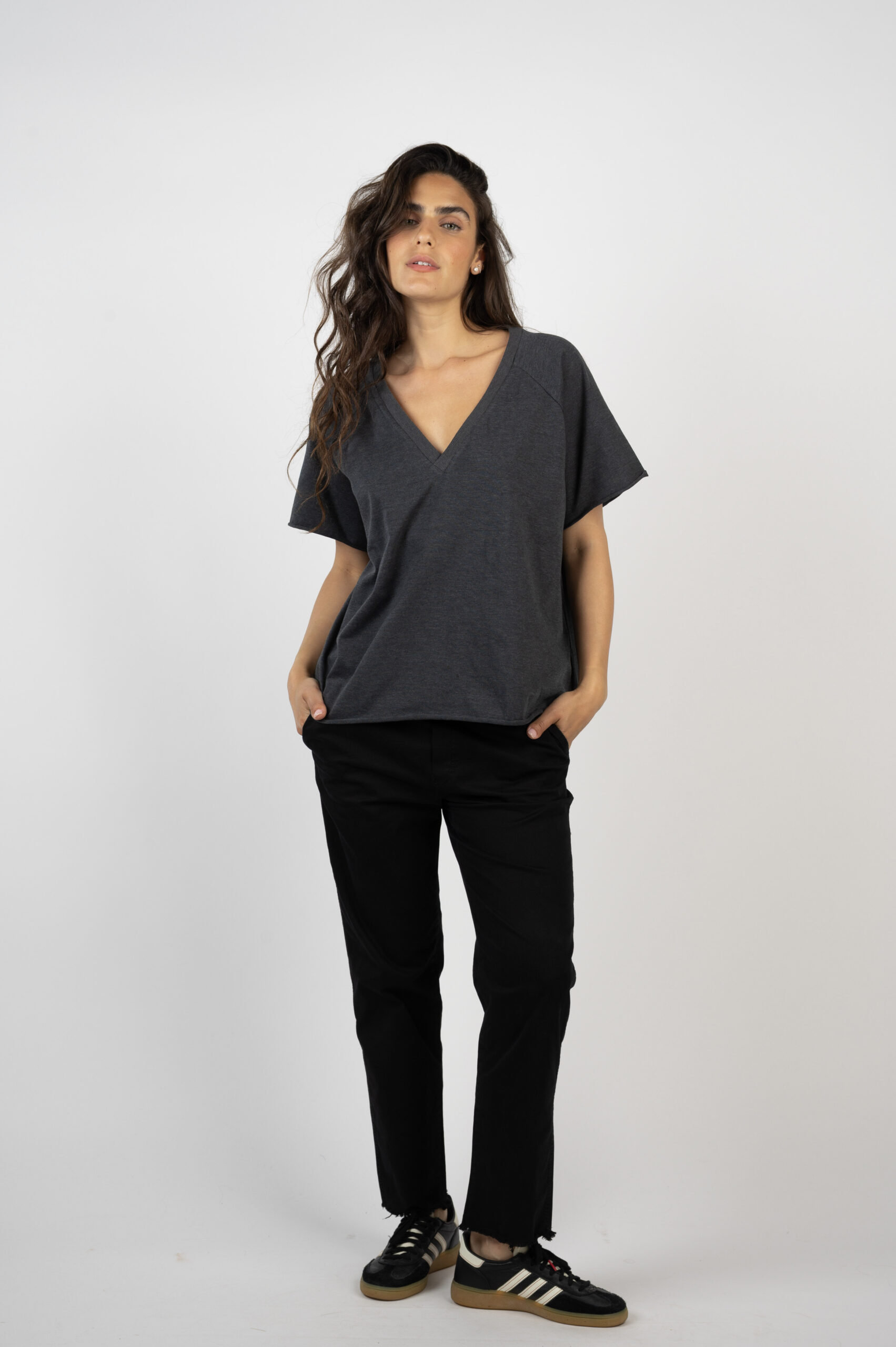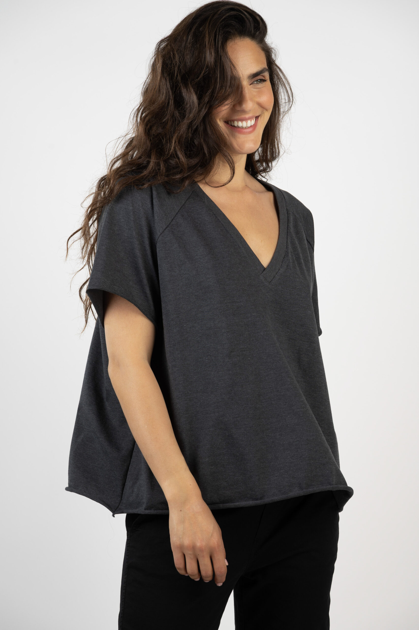 כשאנחנו עושות בייסיק, לפעמים נדמה שזו עוד סתם חולצה. אבל בייסיק טובות, בגזרות מנצחות – צריך לדעת לעשות. ואנחנו יודעות! טופ 'חיים' בגזרת וי רגלן היא לגמרי כזו. פתח וי מדויק בגימור בד ריב מאותו הצבע, בד שלא נצמד לגוף, גימורים ללא תפרים מה שיגרום לבד להתגלגל בטבעיות, טיפונת גזרת A. על הבייסיק הזאת אתן תודו לנו.