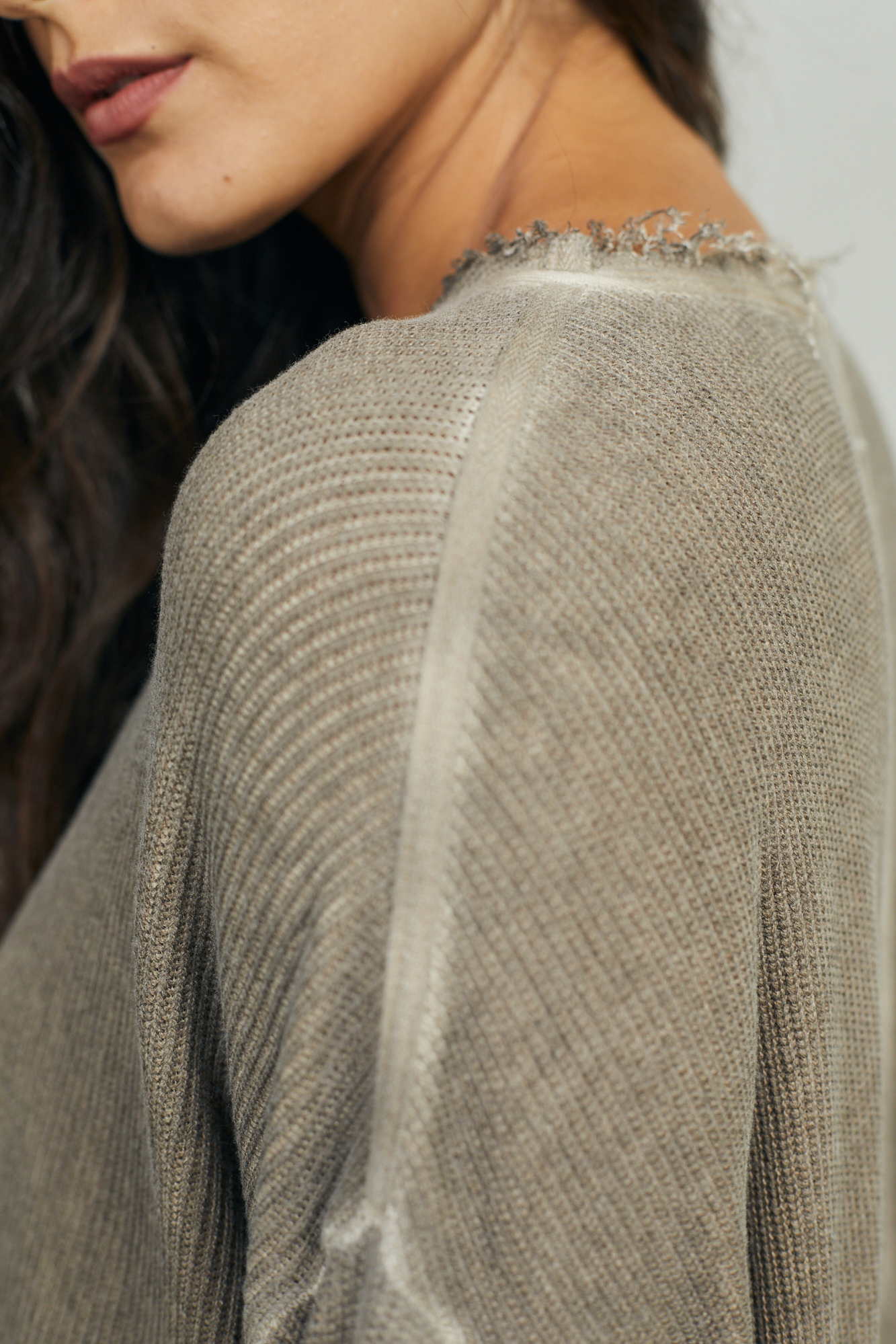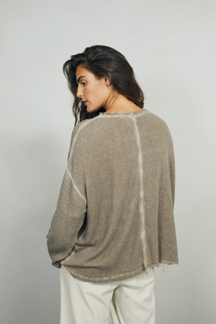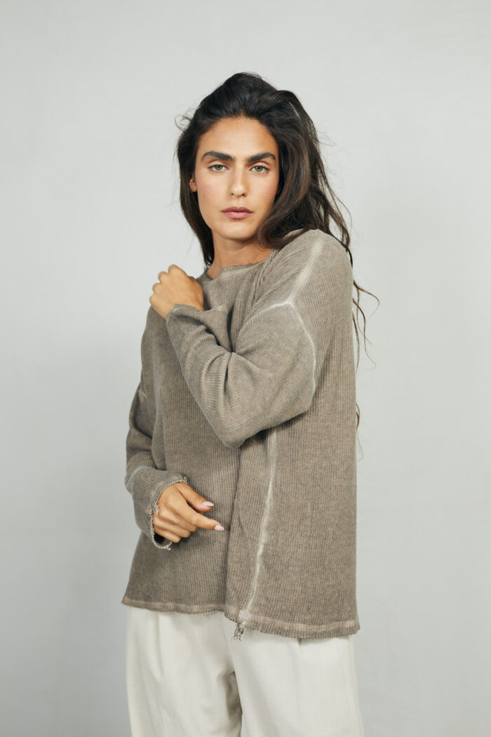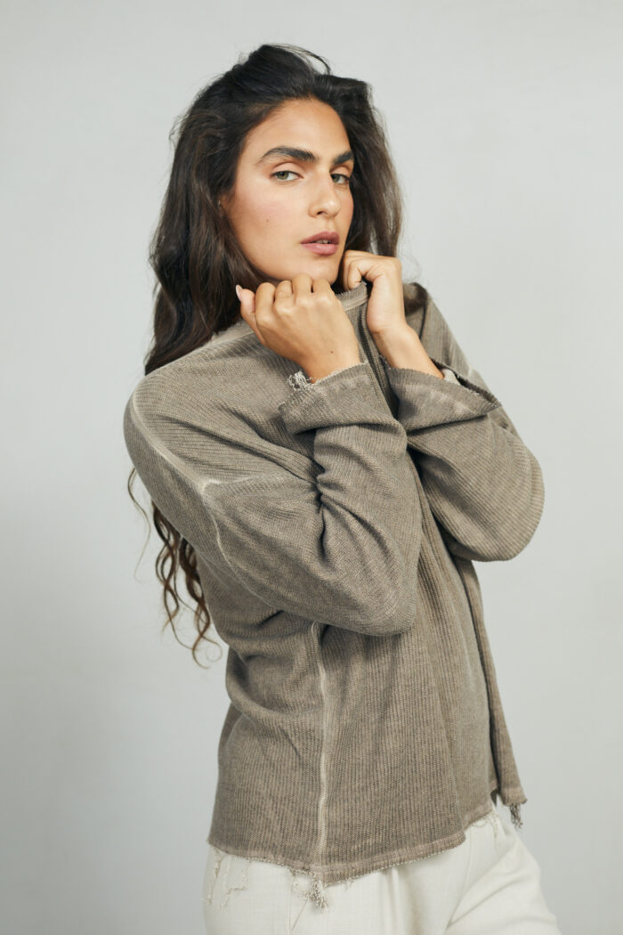 בואו נתן לסטייל לדבר בעד עצמו…טופ טוביתוש הוא סריג מסדרת הצבועים שלנו. טכניקות צביעה שונות שאנחנו יוצרות מהיום הראשון. סריג כותנה מודאל, זרוק במידה הנכונה, עם גימורים פרומים בעדינות. שימו לב לדיטיילס בתפרים, הפתעות קטנות שצצות אחרי הצביעה. נעים למגע, רחוק מהגוף עם נפילה מושלמת.