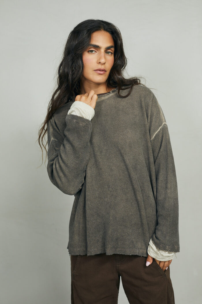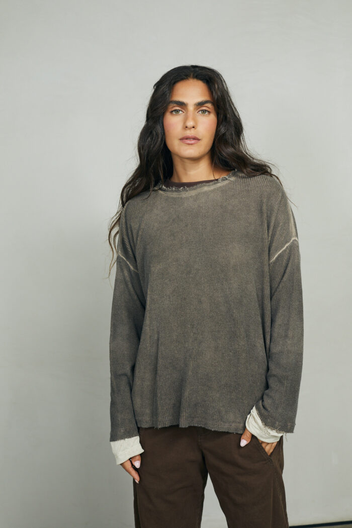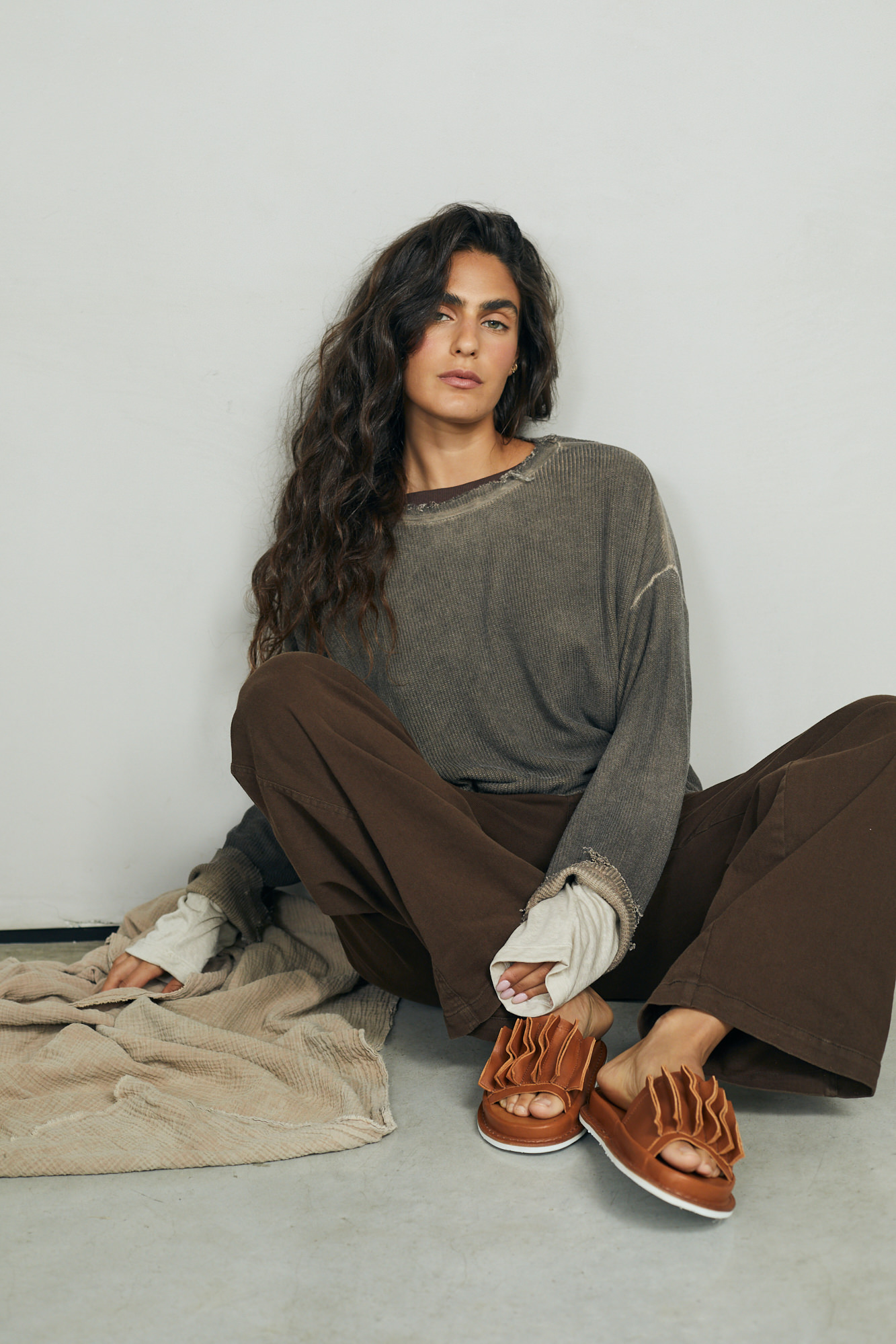 בואו נתן לסטייל לדבר בעד עצמו…טופ טוביתוש הוא סריג מסדרת הצבועים שלנו. טכניקות צביעה שונות שאנחנו יוצרות מהיום הראשון. סריג כותנה מודאל, זרוק במידה הנכונה, עם גימורים פרומים בעדינות. שימו לב לדיטיילס בתפרים, הפתעות קטנות שצצות אחרי הצביעה. נעים למגע, רחוק מהגוף עם נפילה מושלמת.