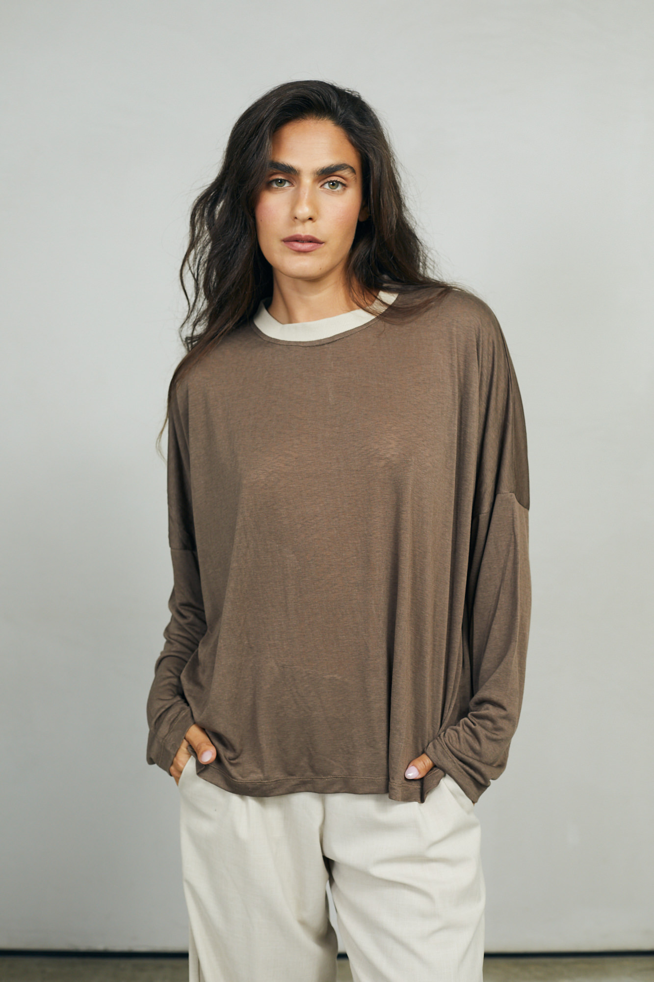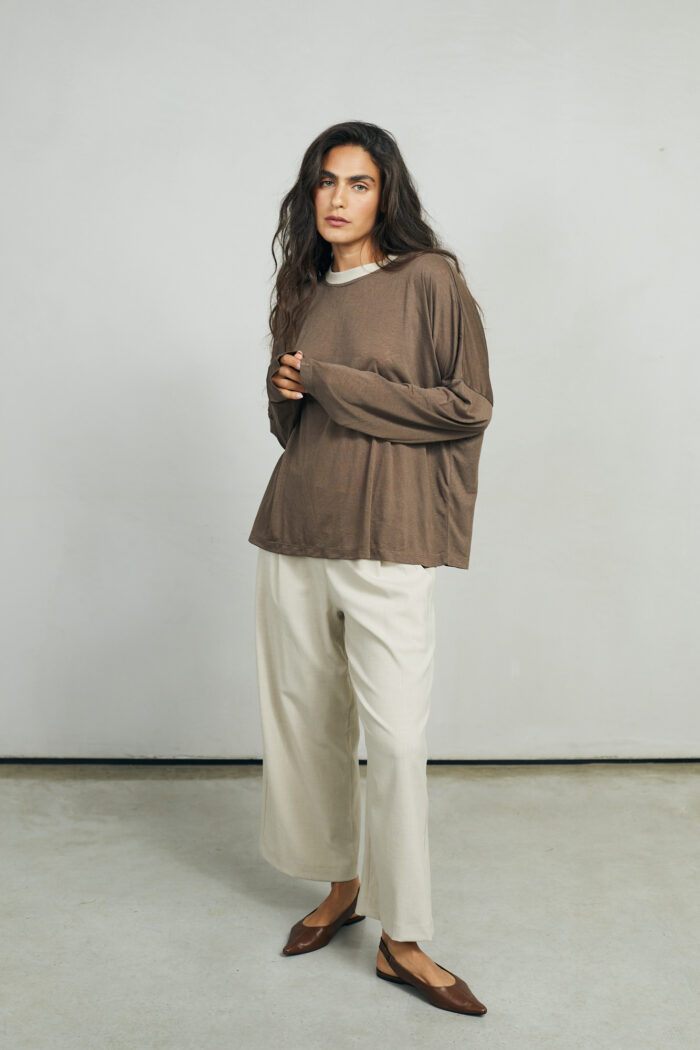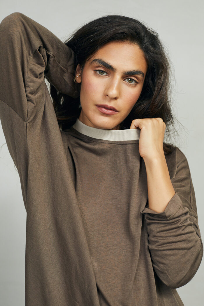 חולצת "ממקה" היא החולצה שלא תרצי להוריד לעולם. הבד המלטף, הנפילה המופלאה על הגוף, נוגע לא נוגע באווריריות מושלמת. שימו לב לפטנט בצבע אבן מבד ריב בצוואר. קחי לך, אחכ תבחרי עוד צבע… מבטיחות.