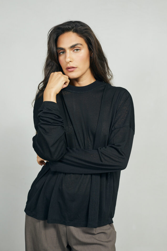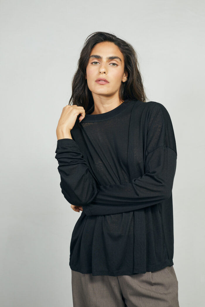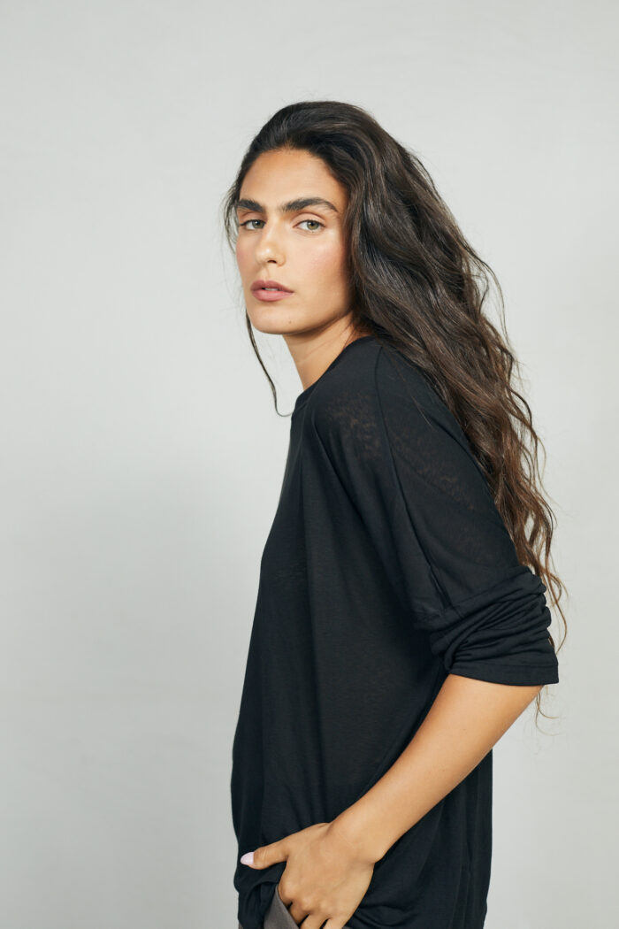 חולצת "ממקה" היא החולצה שלא תרצי להוריד לעולם. הבד המלטף, הנפילה המופלאה על הגוף, נוגע לא נוגע באווריריות מושלמת. שימו לב לפטנט השחור מבד ריב בצוואר. קחי לך, אחכ תבחרי עוד צבע… מבטיחות.