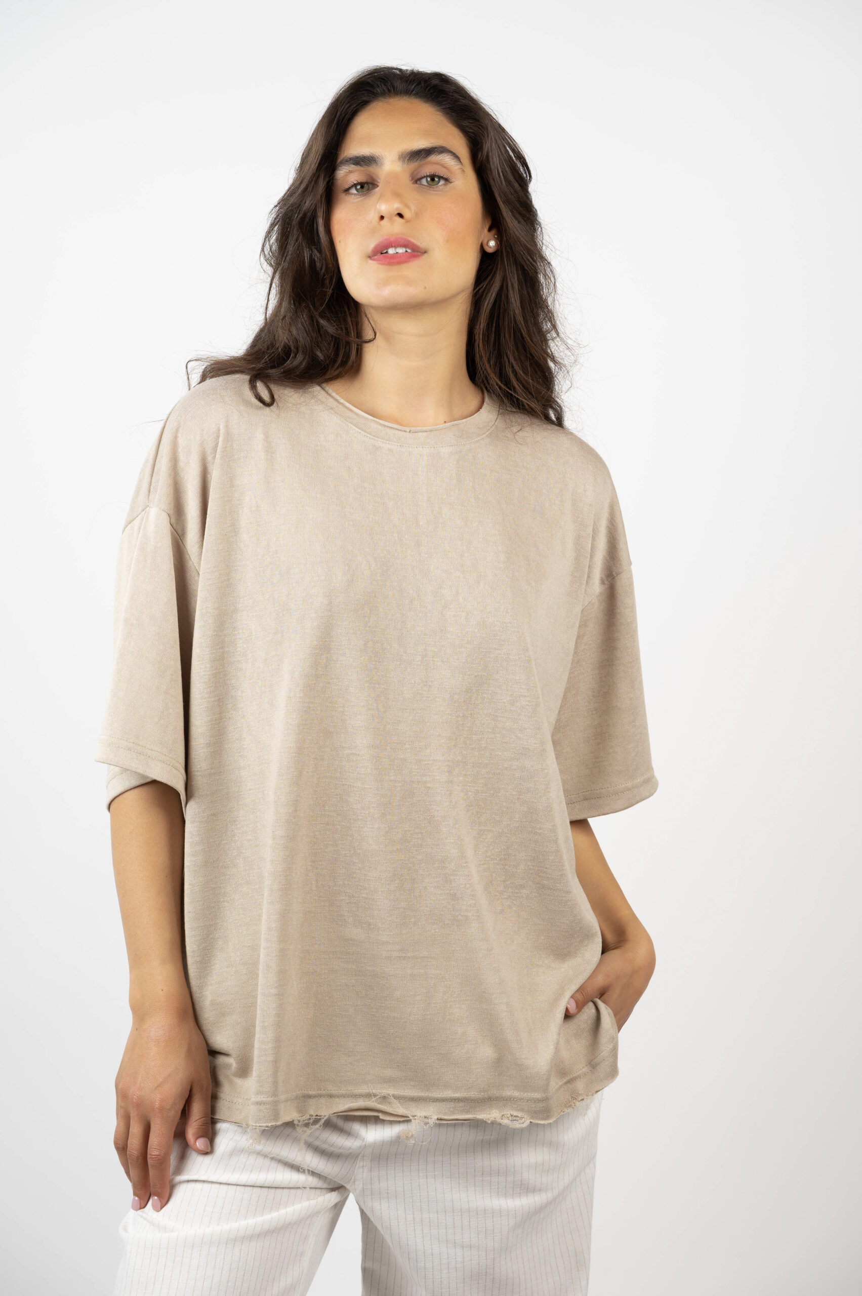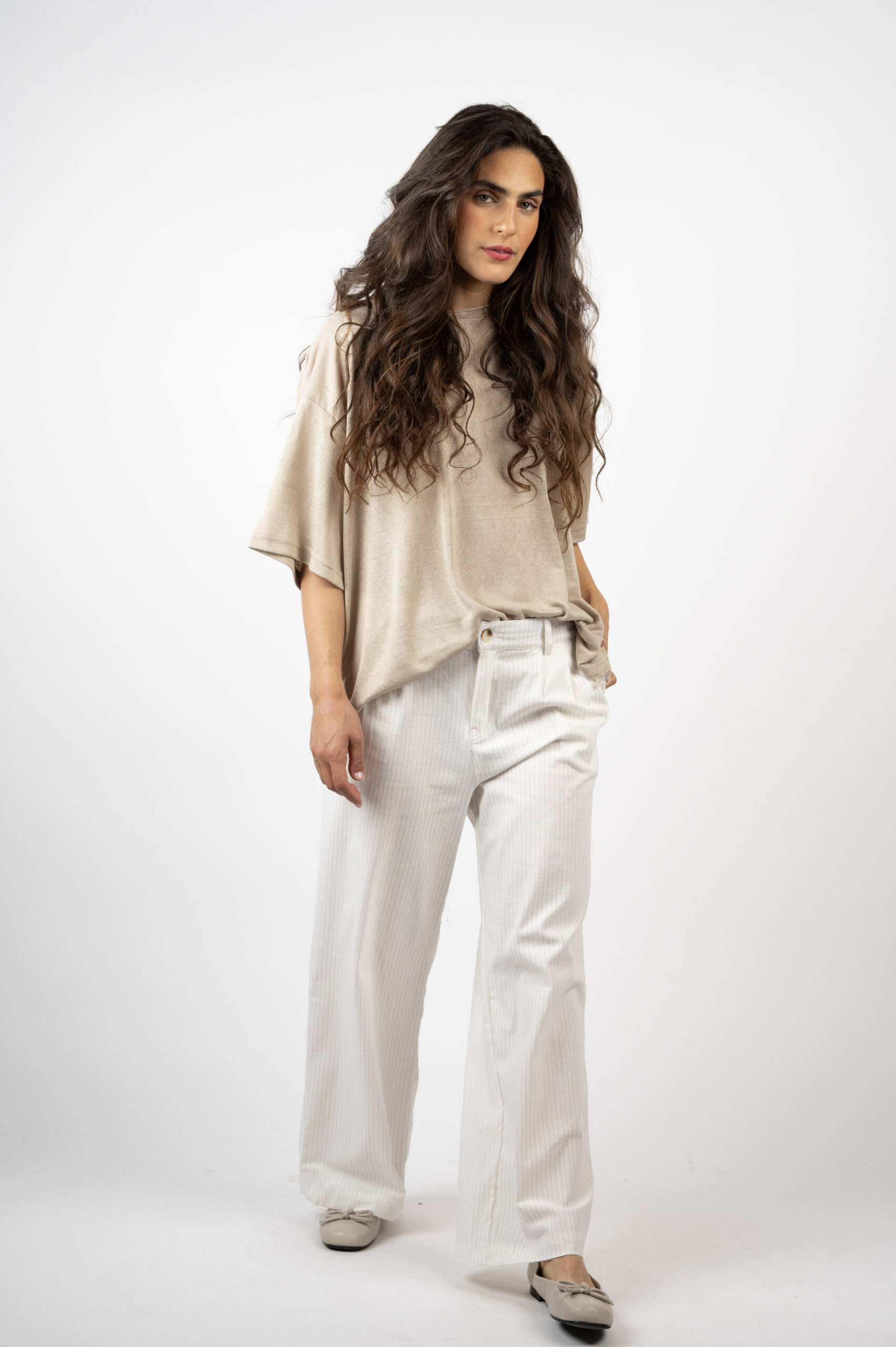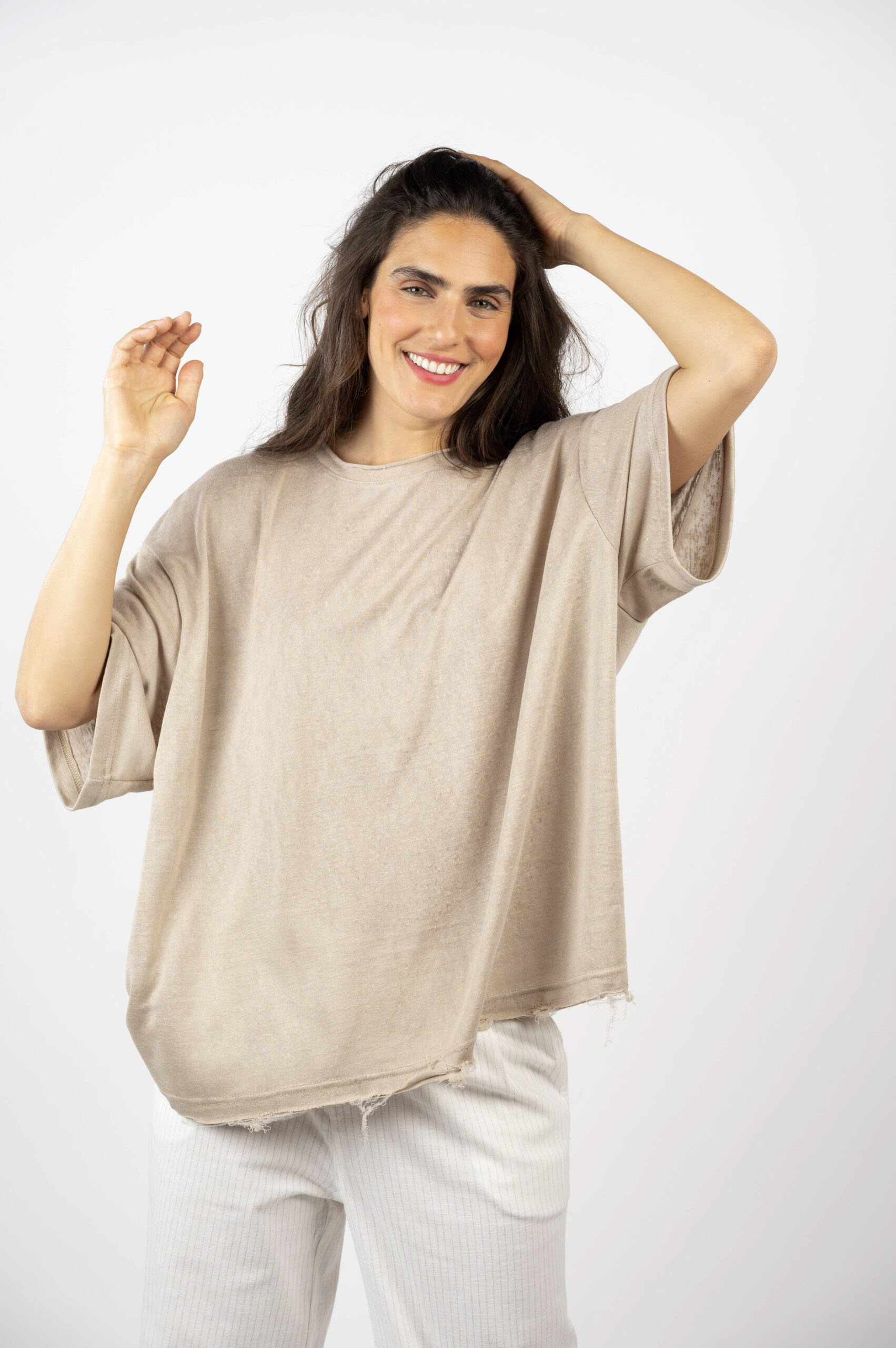 הקיץ הישראלי דורש בייסיק נוחות, אווריריות אבל עם טוויסט. טופ 'ניצן' היא אחת מהן. עשויה בד פשתן עם נפילה מושלמת, נוגעת לא לא נוגעת… גזרת OVER SIZE שתתאים לכל אחת, בהתאם לאופן שתבחרי ללבוש. תחתית החולצה עם פרימה עדינה למראה מגניב ונונשלנטי, צווארון גזור. אתן תתאהבו בה, מבטיחה.