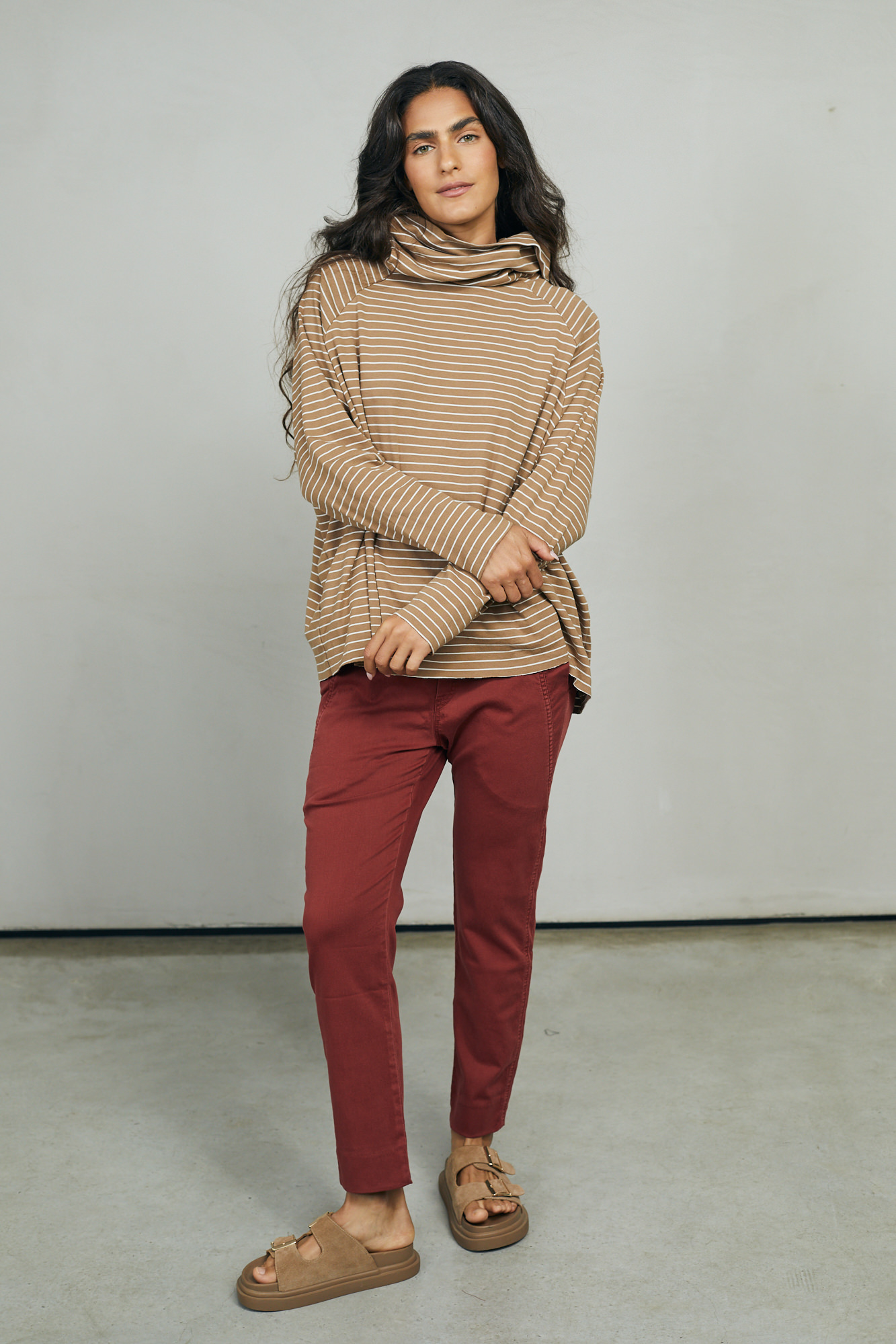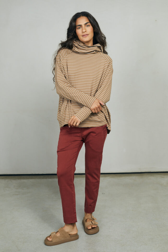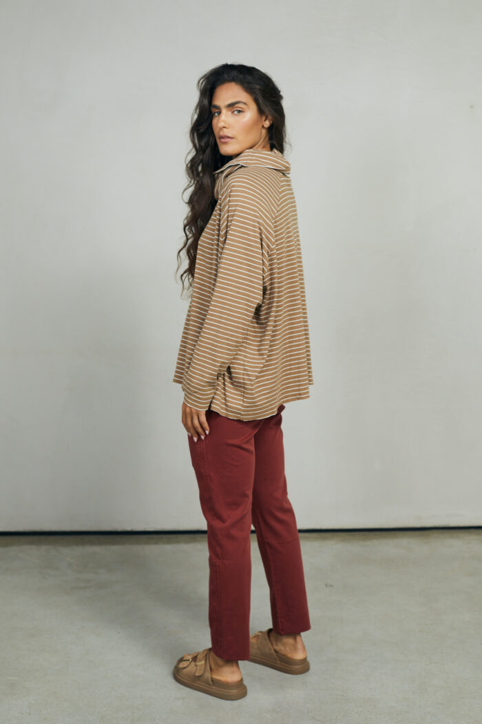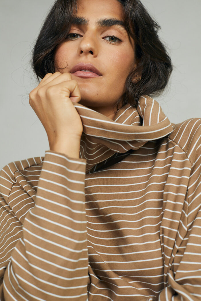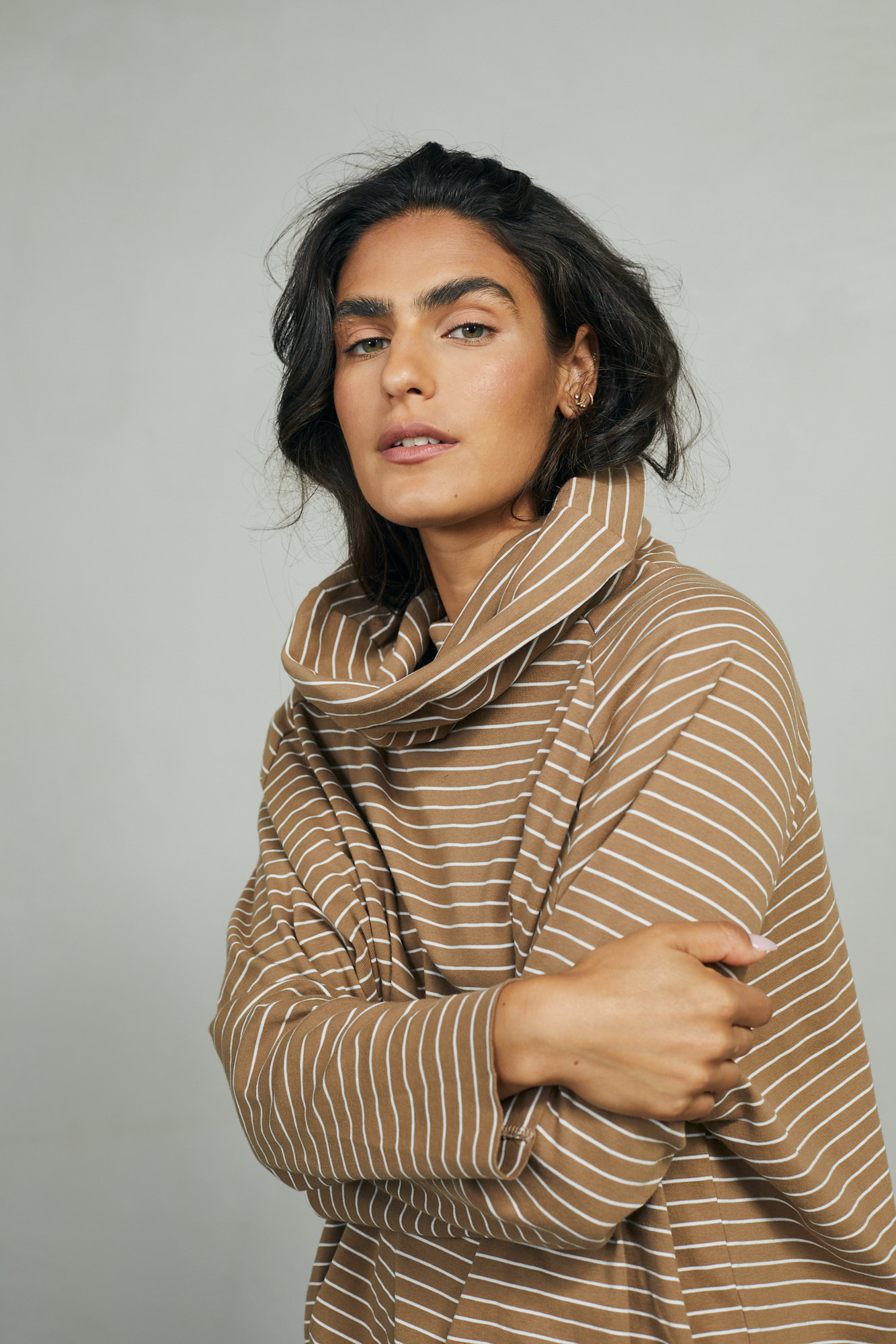 איך חיכיתי שקצת יתקרר ונוכל לחשוף את טופ עדיקה. הוא כל מה שאני אוהבת. גולף OVER SIZE מושלם מושלם. מחבק, מנחם ומלא בשיק. הגולף עצמו גדול עם נוכחות אצילית. הוא תפור דו צדדי, כך שתוכלי לתת לו ליפול בטבעיות. גזרת רגלן אהובה במיוחד ופסים… פסים זו התמכרות. שימי עלייך את גולף עדיקה ולא תרצי להוריד.