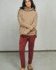 בתמונות, אחינועם לובשת את טופ עדיקה עם מכנסי שניקה בורדו