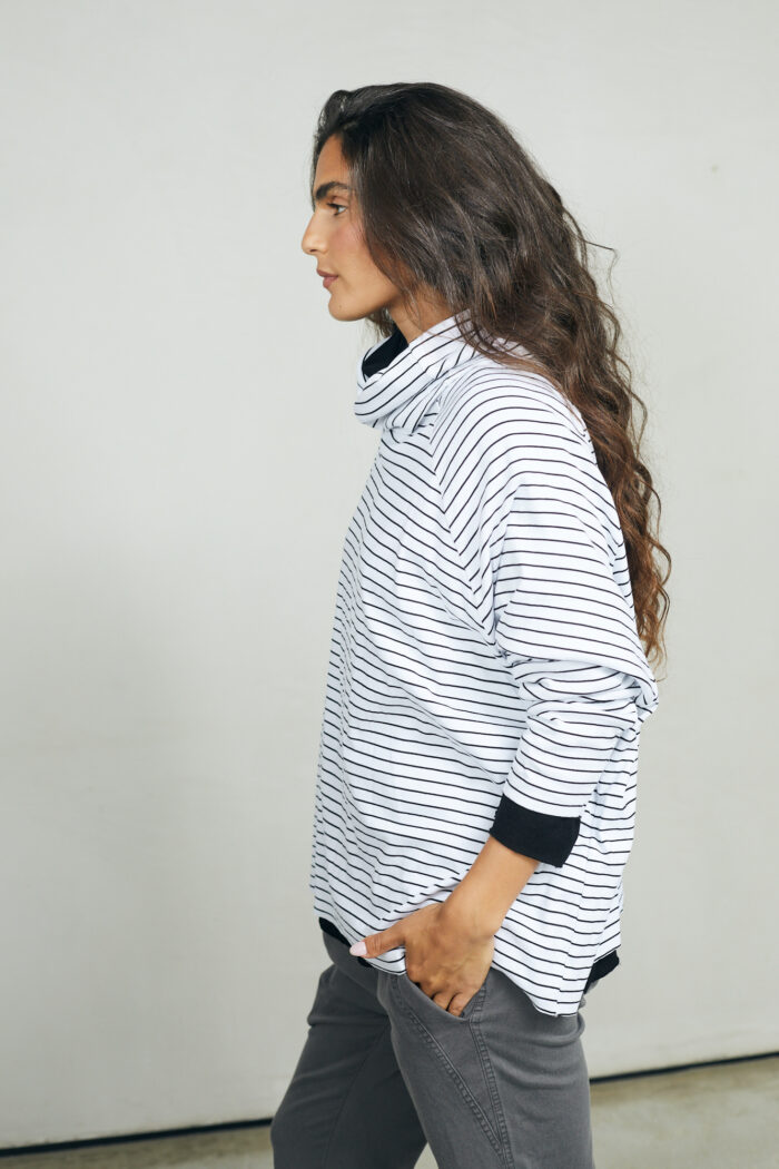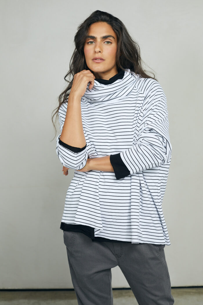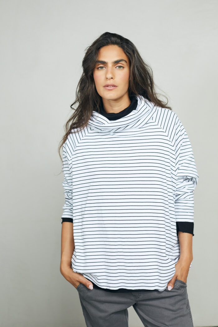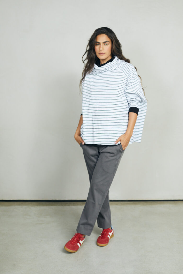 איך חיכיתי שקצת יתקרר ונוכל לחשוף את טופ עדיקה. הוא כל מה שאני אוהבת. גולף OVER SIZE מושלם מושלם. מחבק, מנחם ומלא בשיק. הגולף עצמו גדול עם נוכחות אצילית. הוא תפור דו צדדי, כך שתוכלי לתת לו ליפול בטבעיות. גזרת רגלן אהובה במיוחד ופסים… פסים זו התמכרות. שימי עלייך את גולף עדיקה ולא תרצי להוריד.