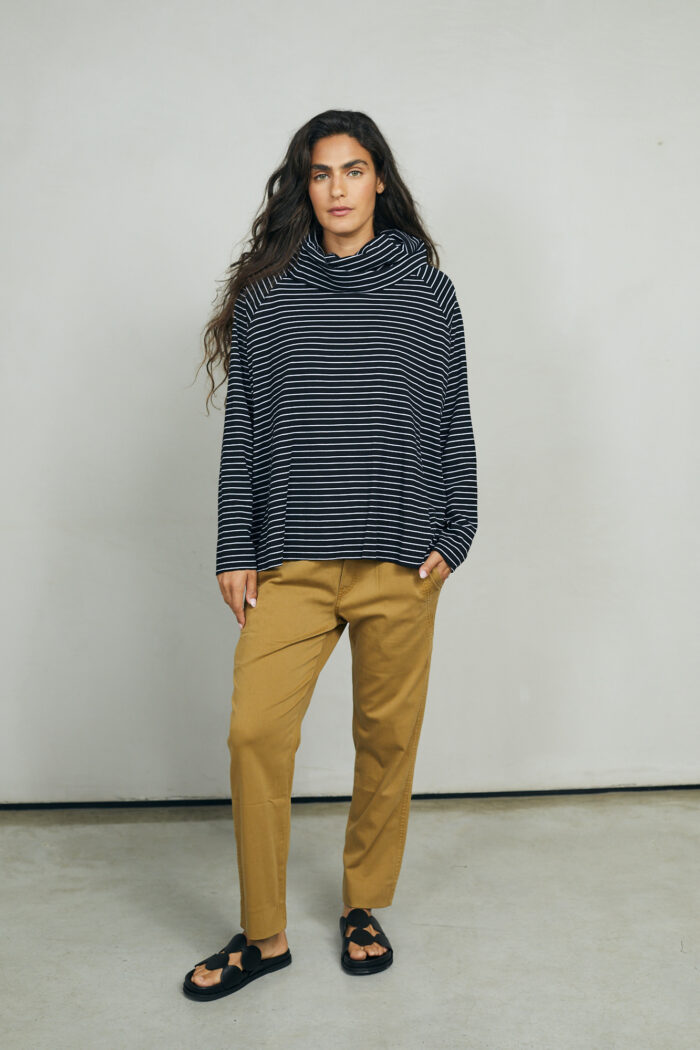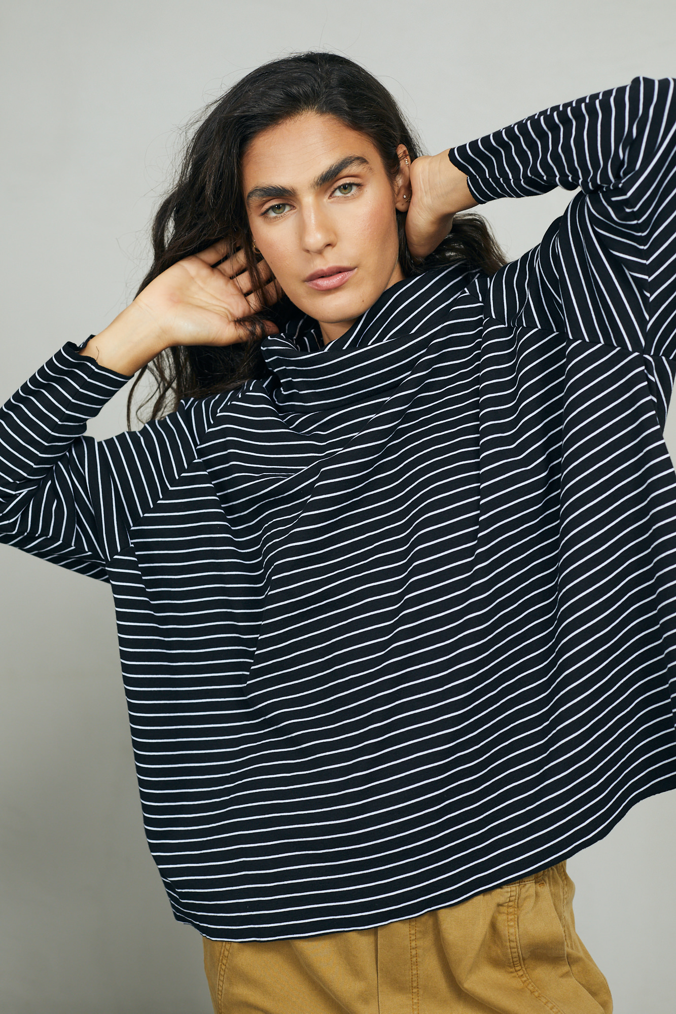 איך חיכיתי שקצת יתקרר ונוכל לחשוף את טופ עדיקה. הוא כל מה שאני אוהבת. גולף OVER SIZE מושלם מושלם. מחבק, מנחם ומלא בשיק. הגולף עצמו גדול עם נוכחות אצילית. הוא תפור בתפר נקי כך שתוכלי לתת לו ליפול בטבעיות. גזרת רגלן אהובה במיוחד ופסים… פסים זו התמכרות. שימי עלייך את גולף עדיקה ולא תרצי להוריד.