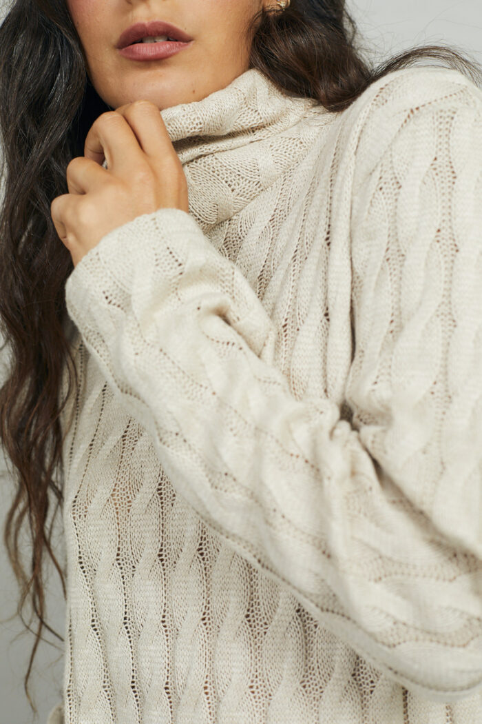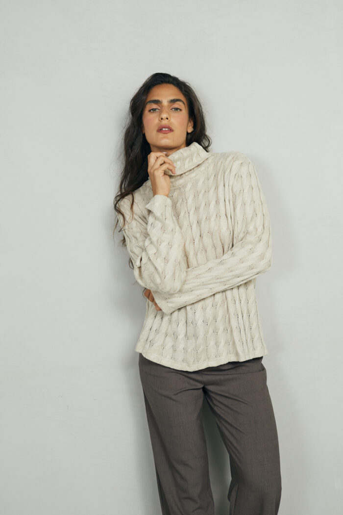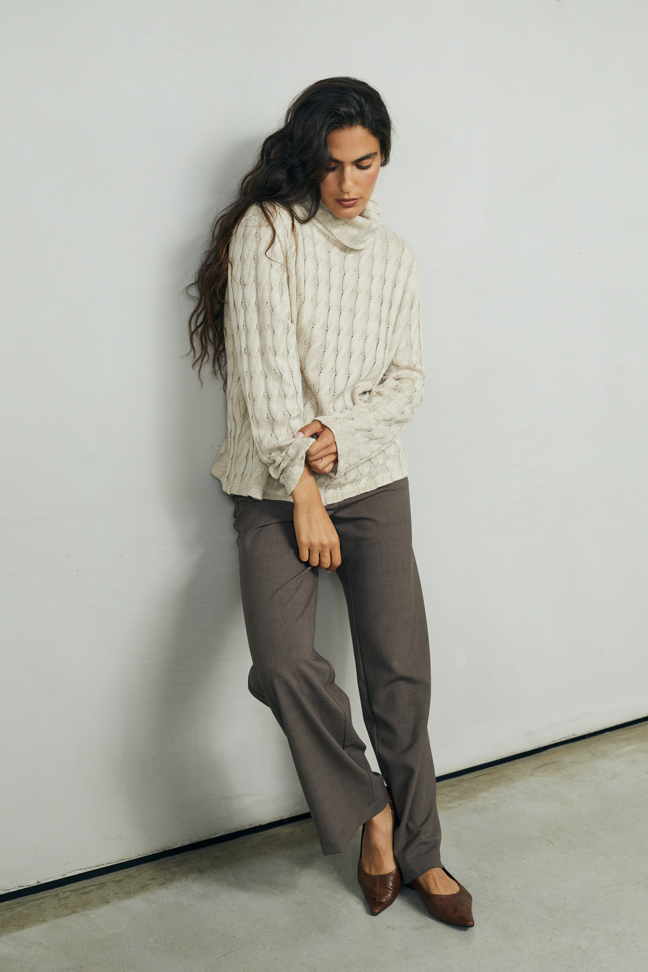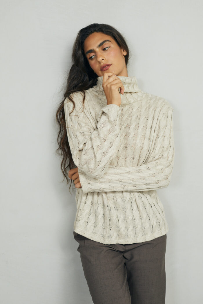 לכל אחת מאיתנו בטוח היתה סבתא שסרגה לה סוודר צמות… זה משהו מפעם, נוסטלגי. אז ניסינו לחזור לזיכרון הזה. אמנם לא בסריגה ידנית, אבל סוודר צמות, מלטף, מחמם ומחבק. גזרת גולף קלאסית שתתאים לכן עם הכל. הבד כל כך נעים שאפשר ללבוש ישירות על הגוף, אבל נסו גם מעל אחת הבייסיקיות שלנו למראה שכבות מהמם.