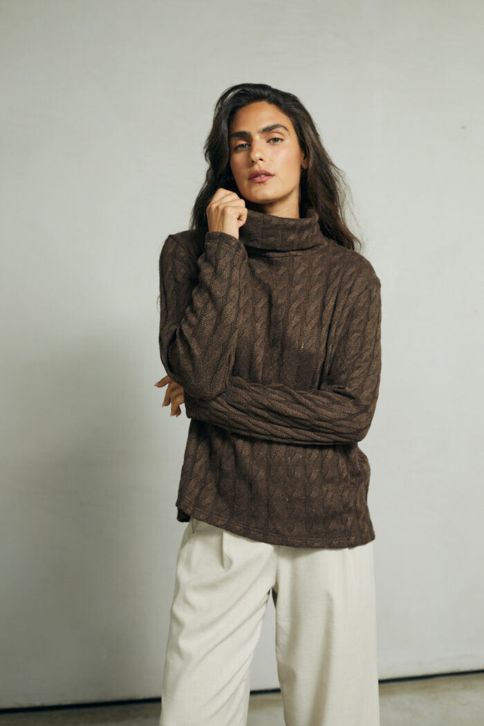 לכל אחת מאיתנו בטוח היתה סבתא שסרגה לה סוודר צמות… זה משהו מפעם, נוסטלגי. אז ניסינו לחזור לזיכרון הזה. אמנם לא בסריגה ידנית, אבל סוודר צמות, מלטף, מחמם ומחבק. גזרת גולף קלאסית שתתאים לכן עם הכל. הבד כל כך נעים שאפשר ללבוש ישירות על הגוף, אבל נסו גם מעל אחת הבייסיקיות שלנו למראה שכבות מהמם.