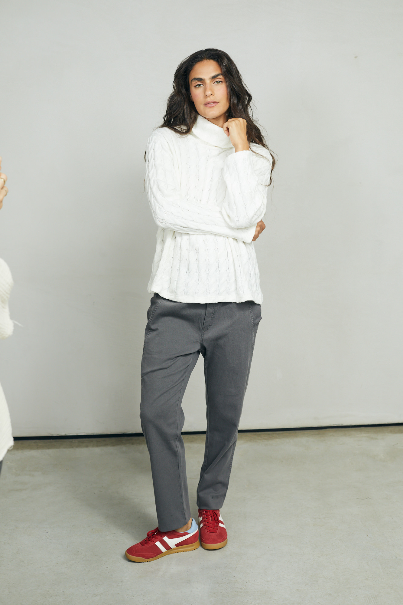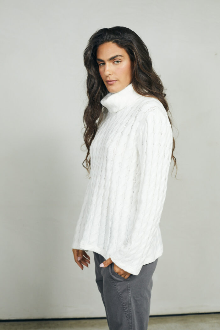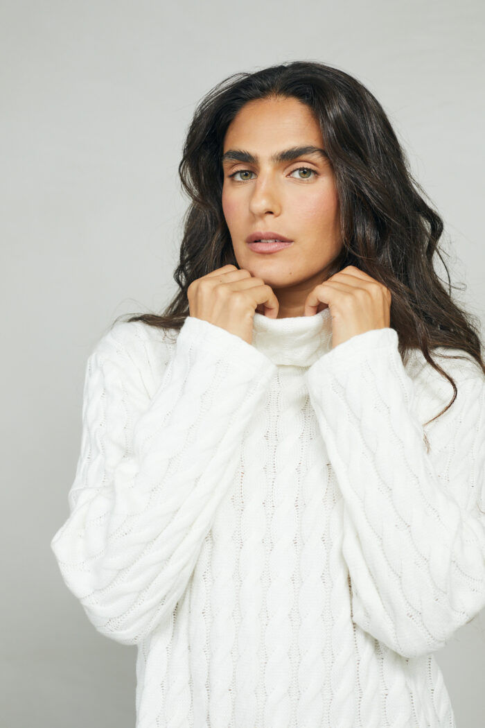 לכל אחת מאיתנו בטוח היתה סבתא שסרגה לה סוודר צמות… זה משהו מפעם, נוסטלגי. אז ניסינו לחזור לזיכרון הזה. אמנם לא בסריגה ידנית, אבל סוודר צמות, מלטף, מחמם ומחבק. גזרת גולף קלאסית שתתאים לכן עם הכל. הבד כל כך נעים שאפשר ללבוש ישירות על הגוף, אבל נסו גם מעל אחת הבייסיקיות שלנו למראה שכבות מהמם.