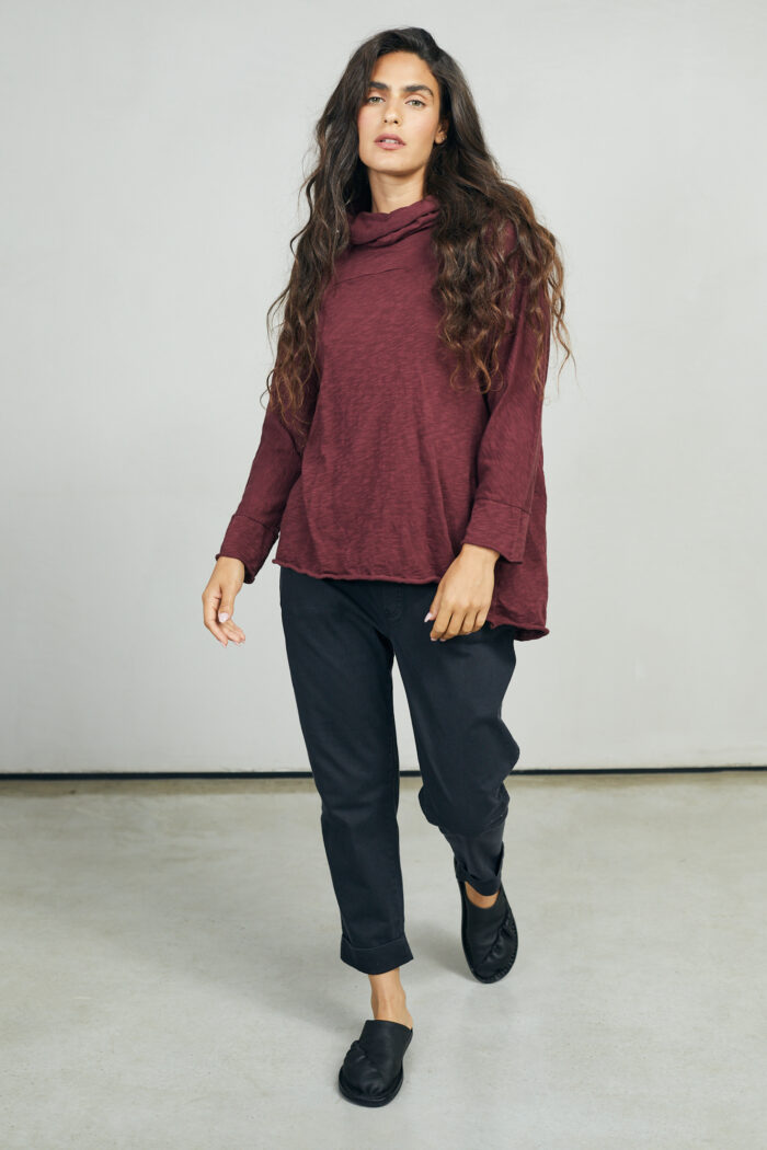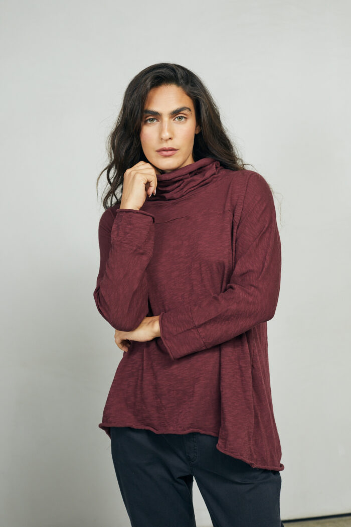 אף פעם אין לנו מספיק בייסיק בארון. אבל לא בייסיק סטנדרטי, אלא כזה שיש לו טוויסט. טופ פחזנית הוא כזה. 100% כותנה מלטפת. הוא ניראה  כאילו נונשלנט, אבל אם תתקרבו, תוכלו לראות את הגזרה המיוחדת את חלוקת התפרים, את הדיטיילס הזה שאנחנו כל כך משקיעות בו. יש לו גולף עדין, גימורים ללא תפר, הוא ארוך יותר מאחור, שרוולי 3/4 מופלאים לסתיו אבל אוטוטו תוכלו ללבוש  מתחת לג'קט (ג'קט לישקוש, או אלכסוש, או גילוש…)  או עם קימונו רומצ'וק.