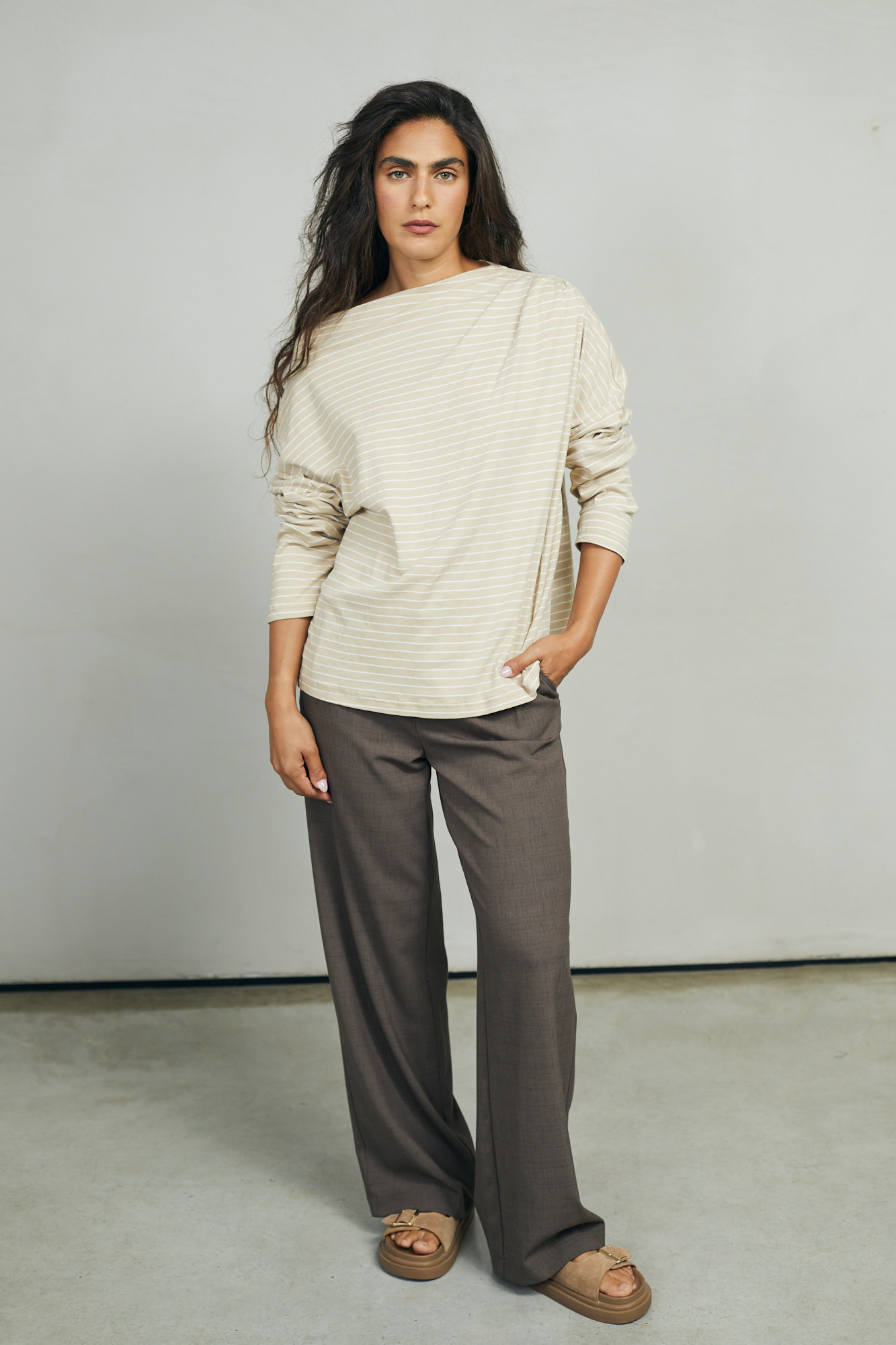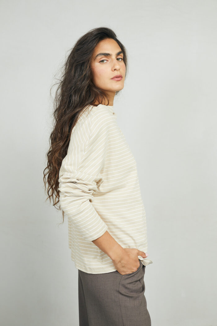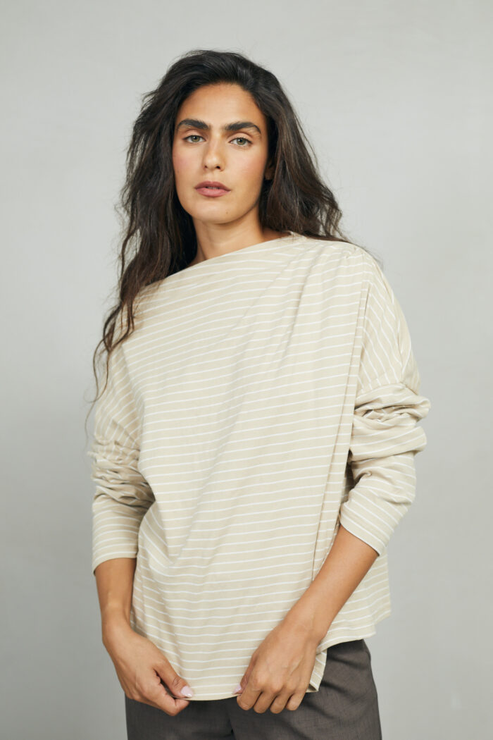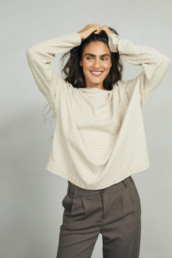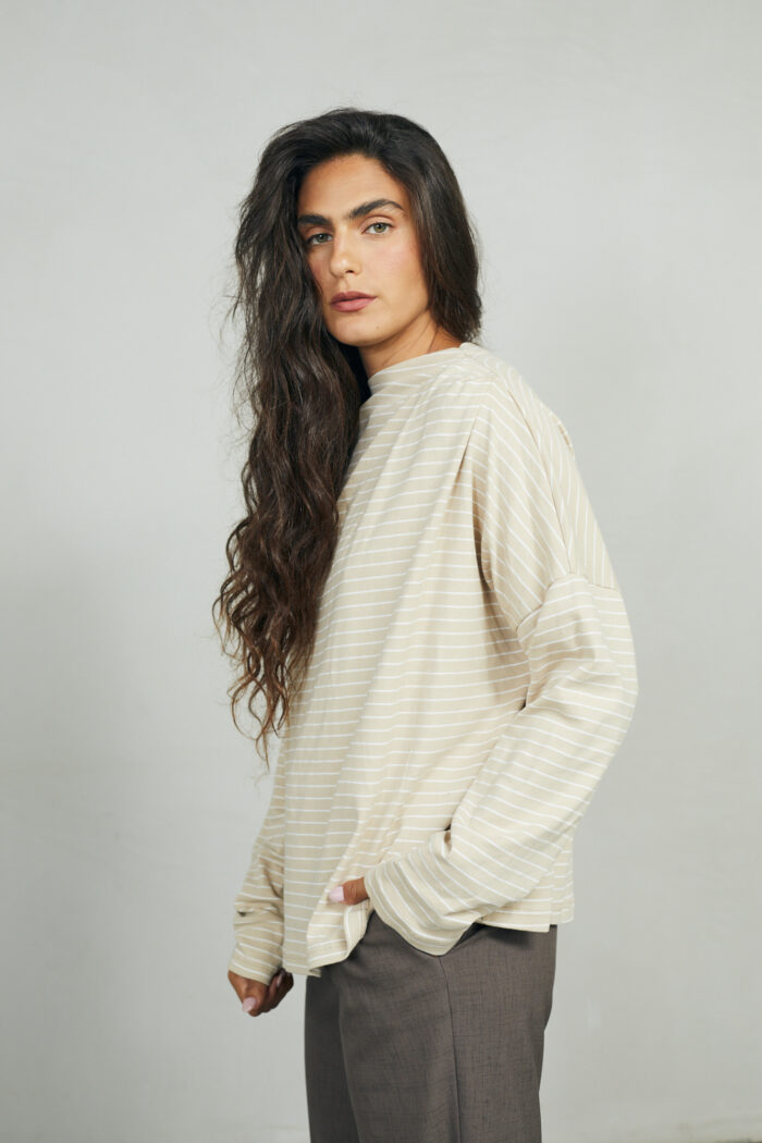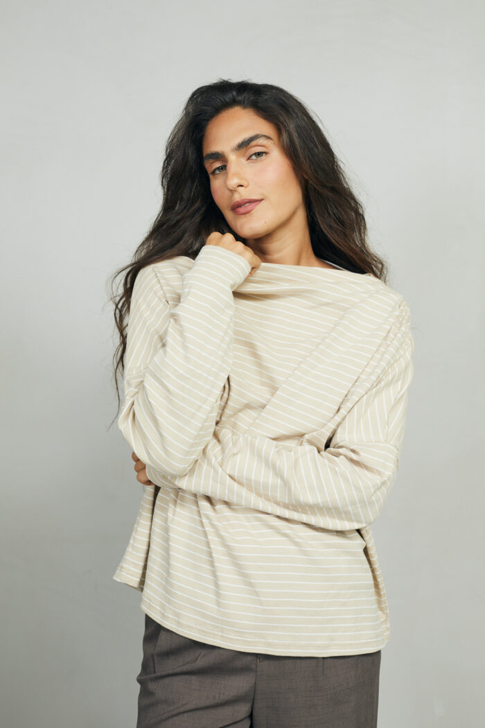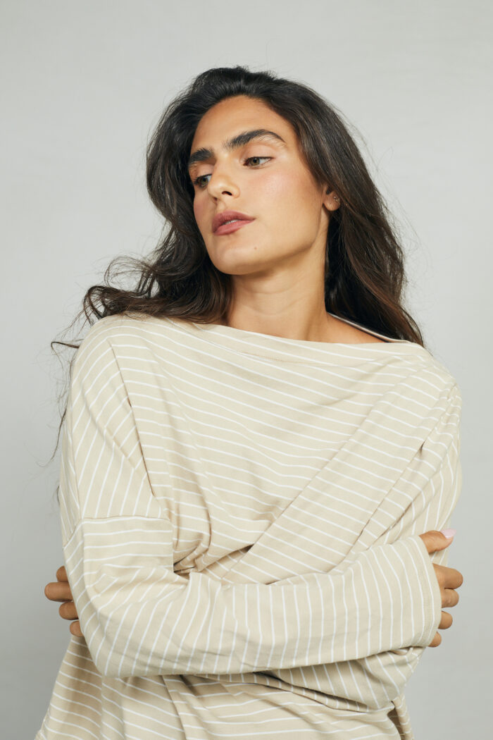 טוב, תתכוננו להתמכרות חדשה. מה יש בה בשושקי הזאת שכל כך קל להתאהב בה? הכל! גזרה מנצחת עם טוויסט במפתח הצוואר. בצד אחד קפלונים שיוצרים עניין ובצד השני כתף טיפה חשופה. זו תהיה בחירה שלך כמה לחשוף… היא לא גדולה ולא נצמדת, עם בד פסים שאנחנו מכורות… אורך מושלם וסטייל לפנתאון. נסי אותה, תתאהבי גם את.