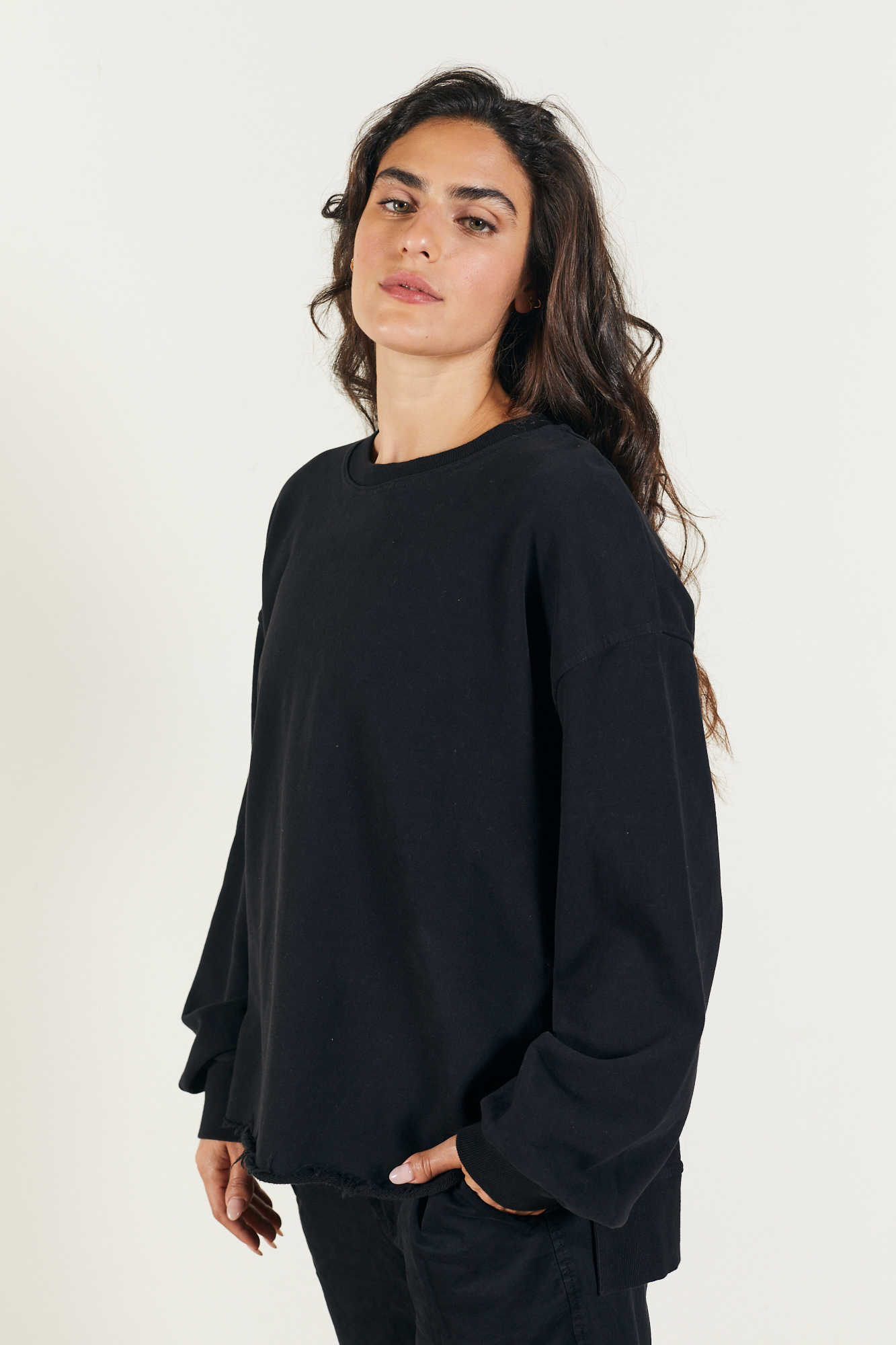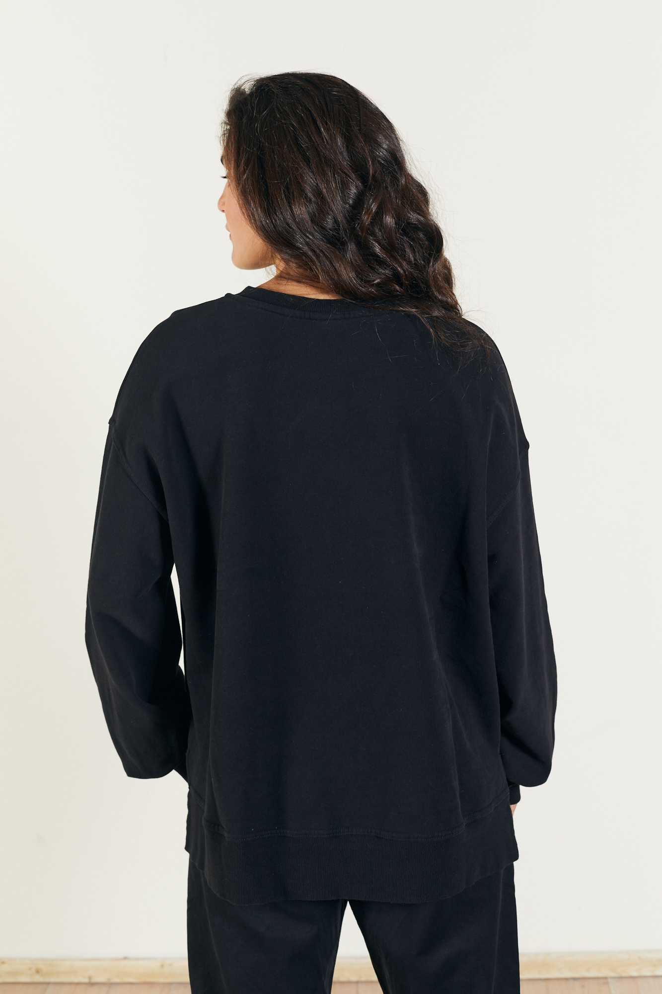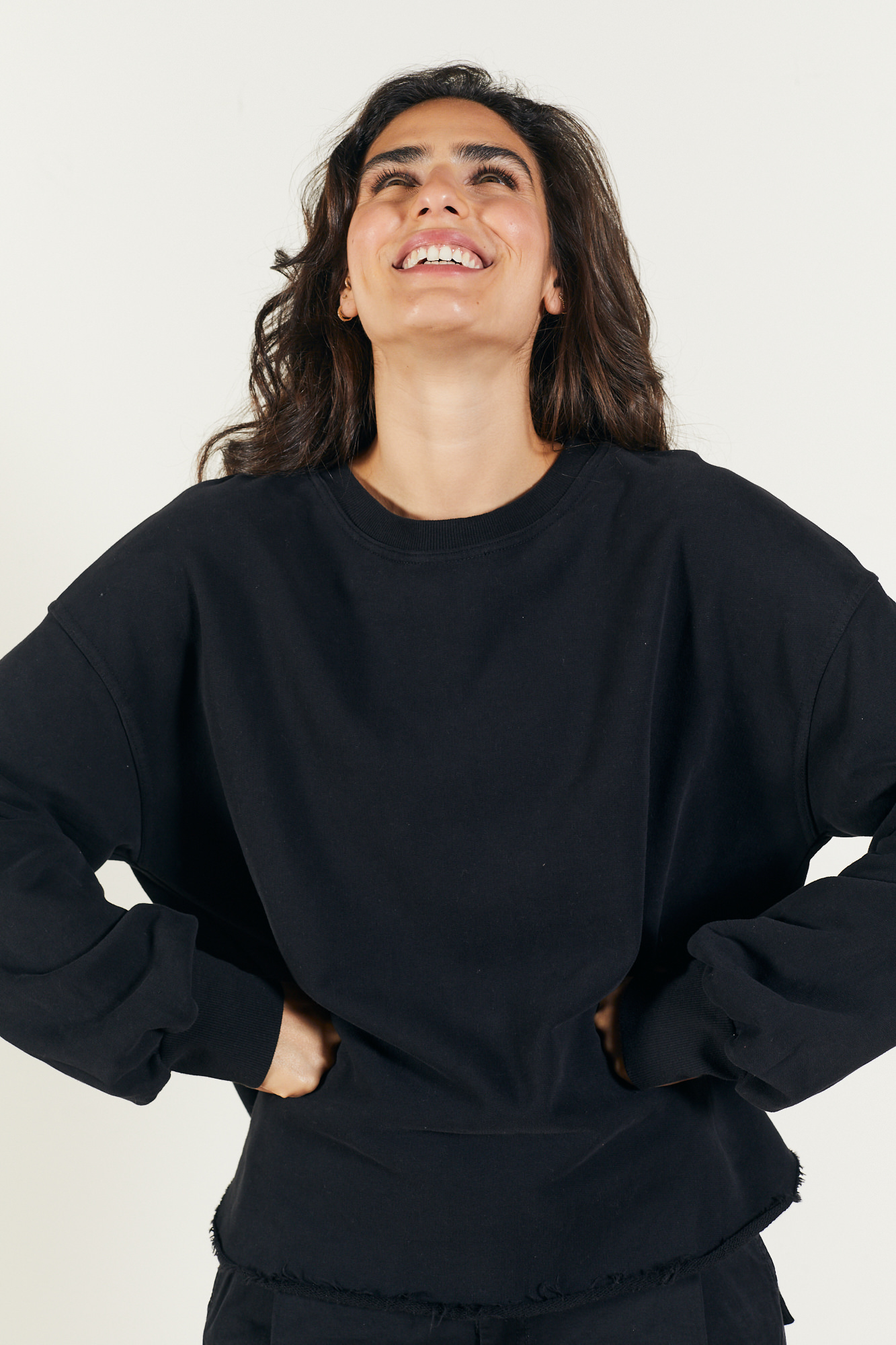 ואי ואי איזה פינוק חורפי הבאנו לכן. בא לי להתכרבל בו 24/7, כולל לעבודה ולדרינק בערב. סוג של סווטצ'רט, אבל בסטייל של החיים. פתח ניקי נוח ומרווח, הוא קצת יותר קצר מלפנים עם גימור פרום בנונשלנט. מאחור, גימור עבה של בד ריב באותו הצבע. שרוולי פעמון קלילים עם גימור מבד ריב. באחריות אני אומרת לכן, לא תרצו להוריד. מגיע בשלוש מידות סופר נדיבות: