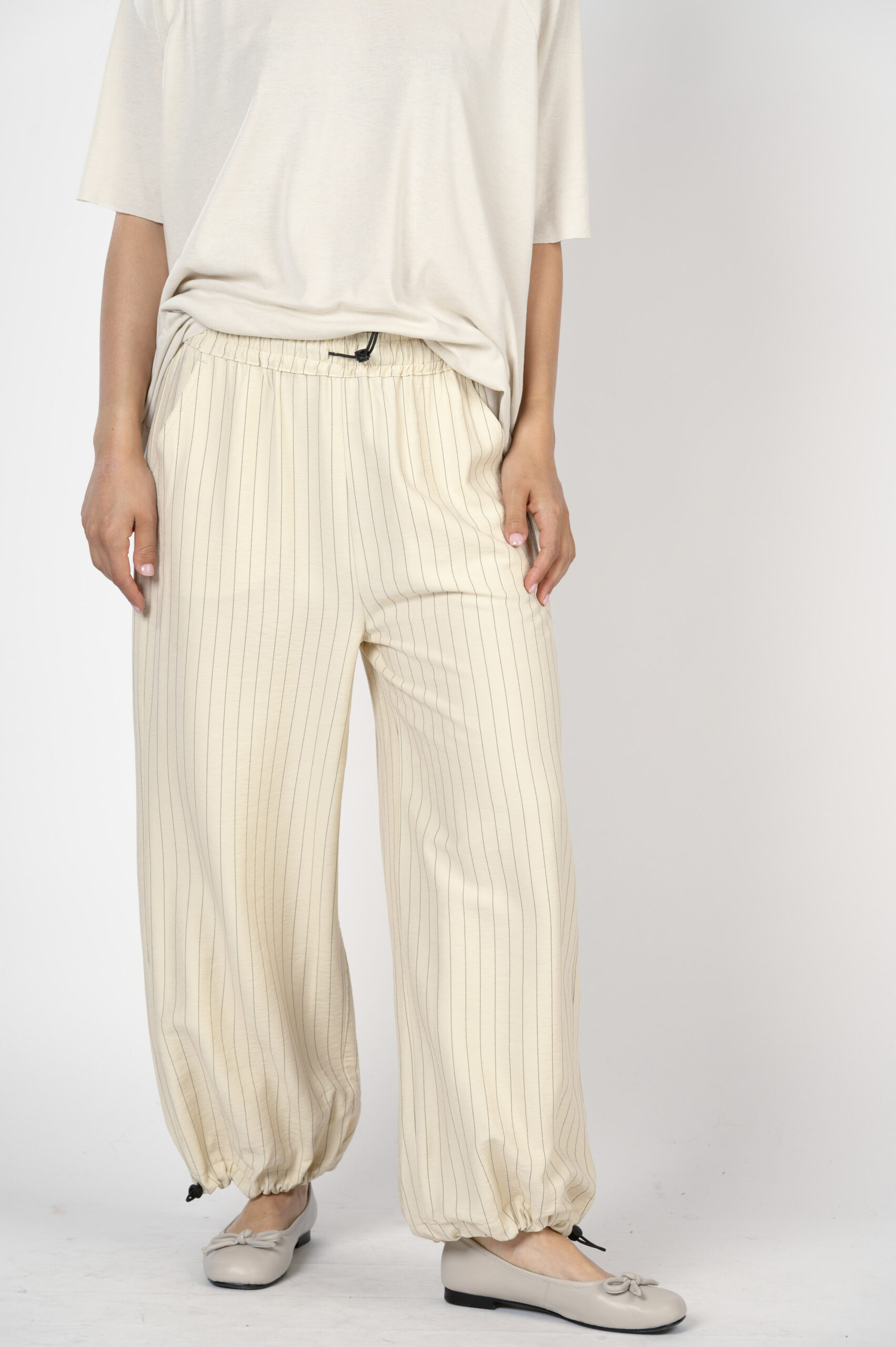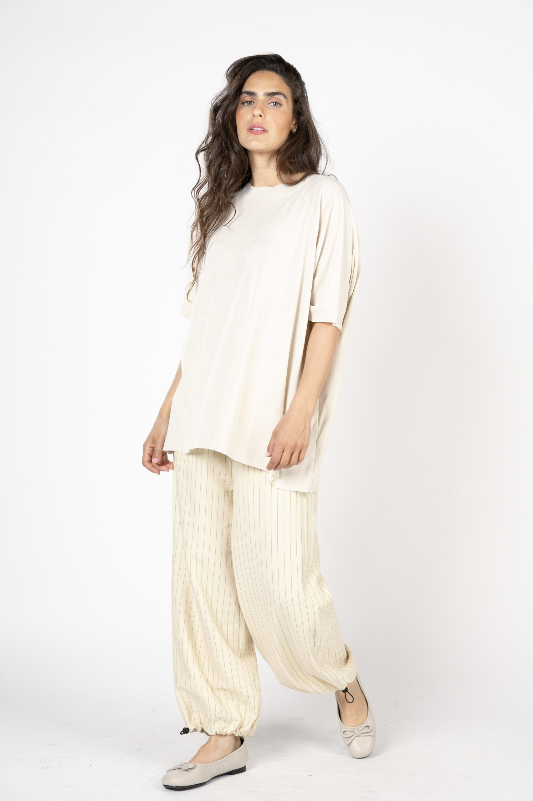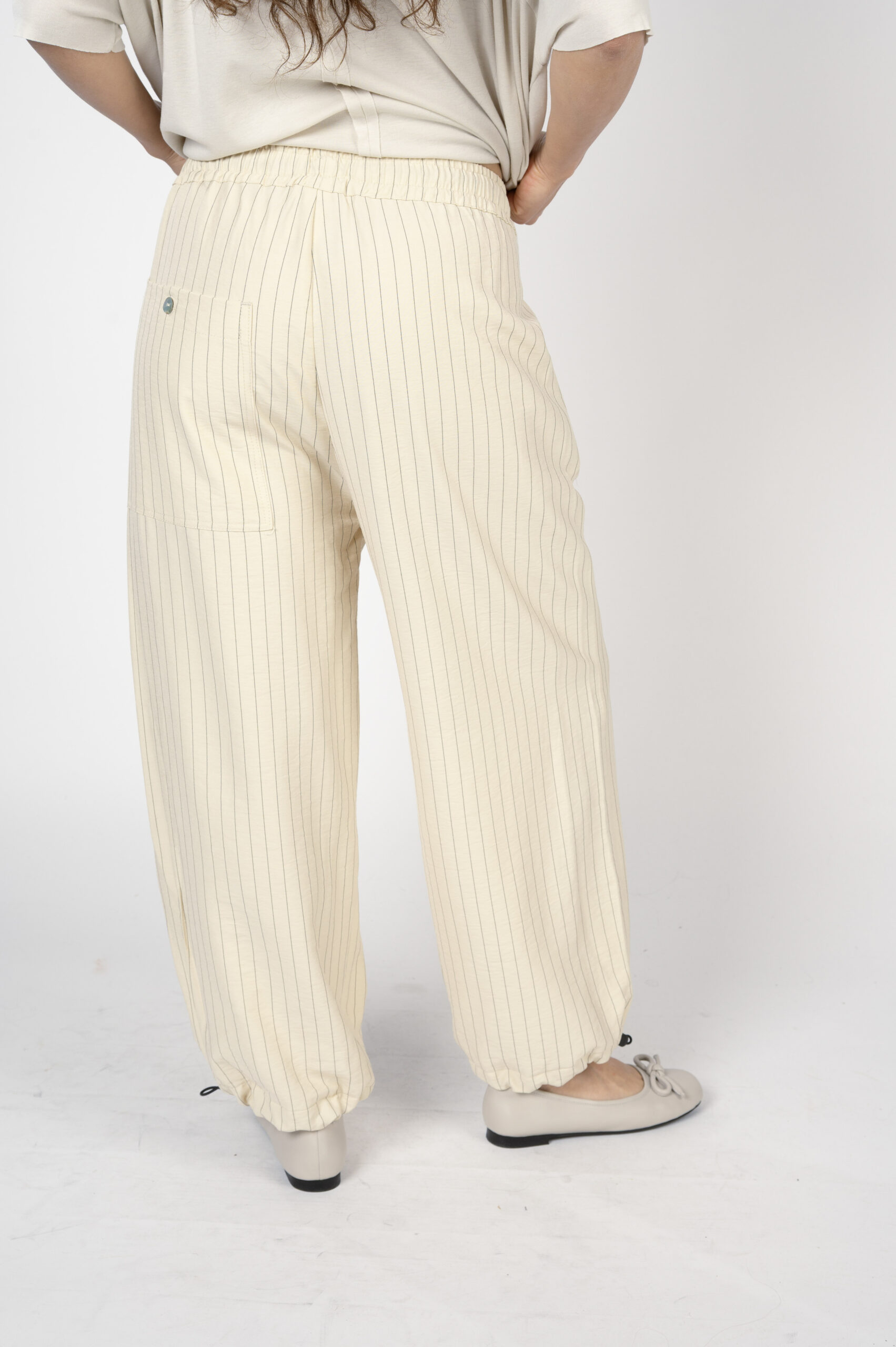 אנחנו משקיעות הרבה מחשבה בייצור דגמים שישרתו אתכן 24/7. מכנסיים מצוינים, שישנו את הלוק שלך בהתאם לנעליים שתנעלי. מכנסי 'התבהרות' הם כאלה. לוק שמשתנה לפי הבחירה שלך. מכנסי התבהרות הם בגזרת בלון. עם בד פסים אקסקלוסיבי, שנופל על הגוף בשלמות. יש לו גומי בקצוות ליצירת מראה בלוני, אבל ניתן גם לשחרר וללכת פתוח. גומי מותן בתוספת קשירת גומי, כיסים עמוקים ונוחים, וכיס גדול עם כפתור מאחור. לערב, לבוקר, לאירוע או סתם שקיעה רומנטית בים…
