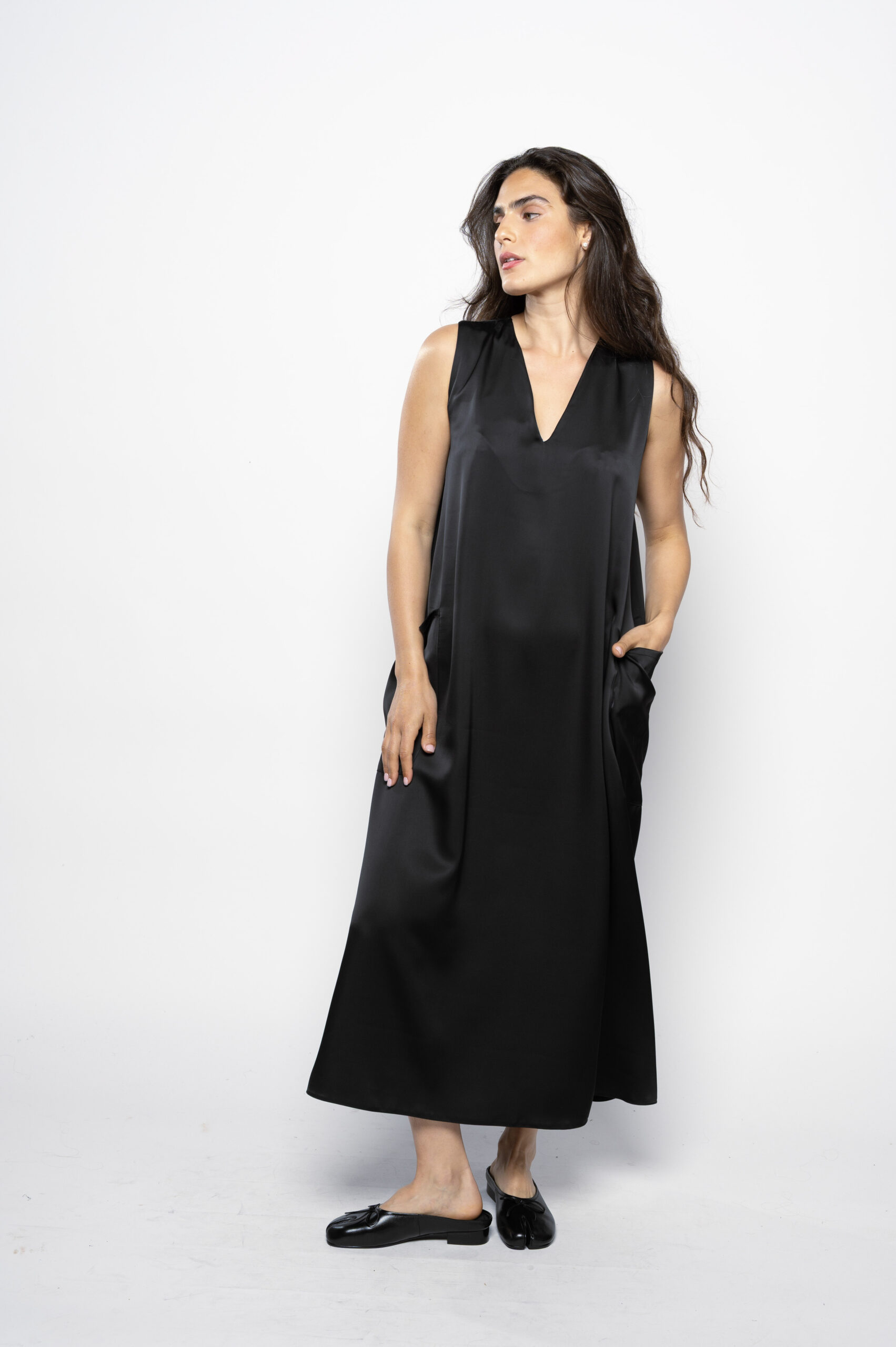 מלא זמן אתן מבקשות שנעשה לכן שמלה, אז הנה, נעתרנו. עשינו עבורכן שמלת מקסי שחורה, ארוכה, מחמיאה, רחוקה מהגוף, עם פתח וי נהדר, גזרת A קלאסית ושני כיסים עמוקים בצדדים. שמלה שיכולה להיות גם שמלת ערב לאירועי הקיץ, אבל גם שמלה כיפית שתגנוב את ההצגה ביום יום. אתן מקבלות עם השמלה חגורת קשירה שיקית. בחירת הנעליים שתנעלו, תקבע את אופי הלוק.